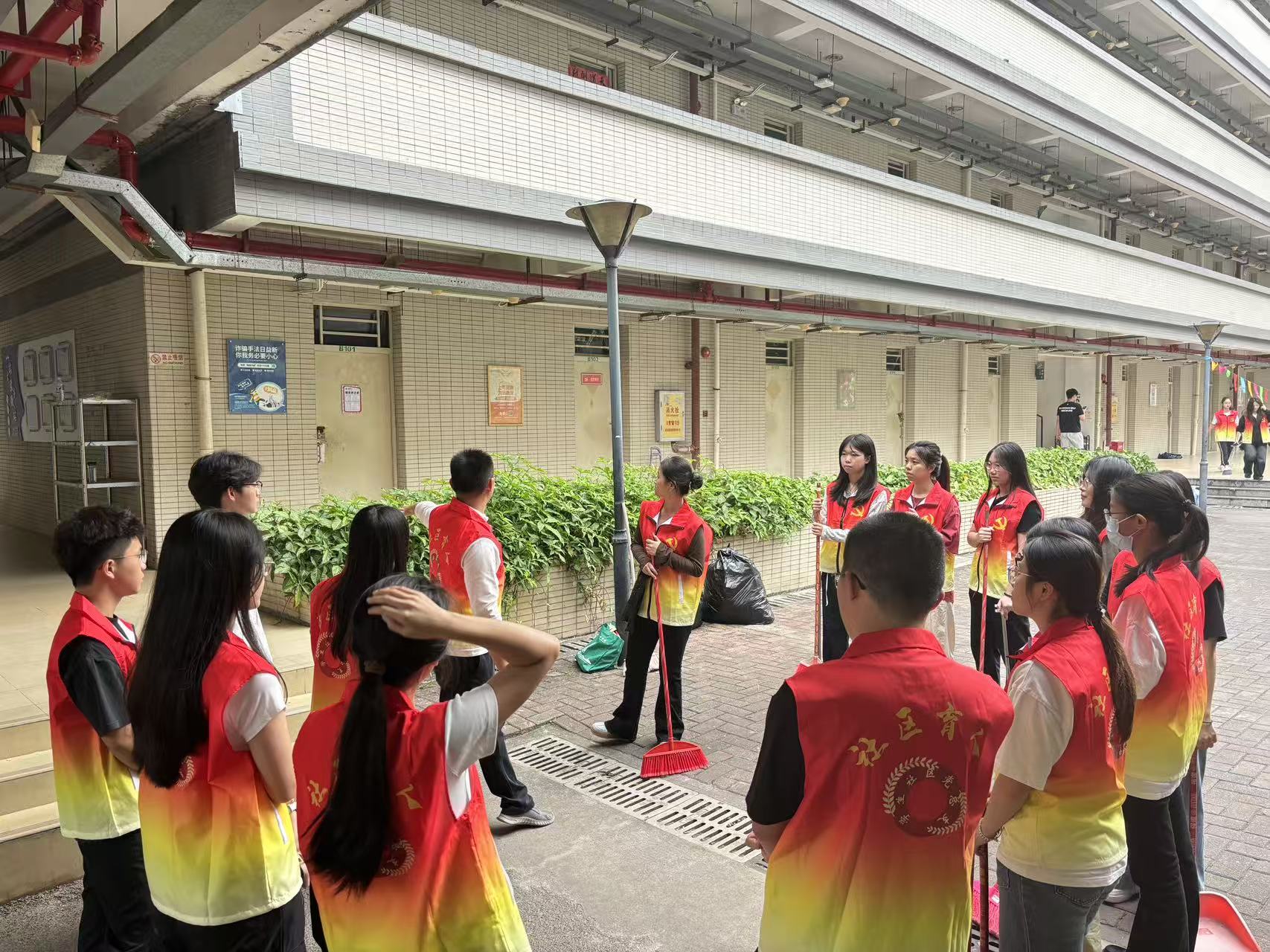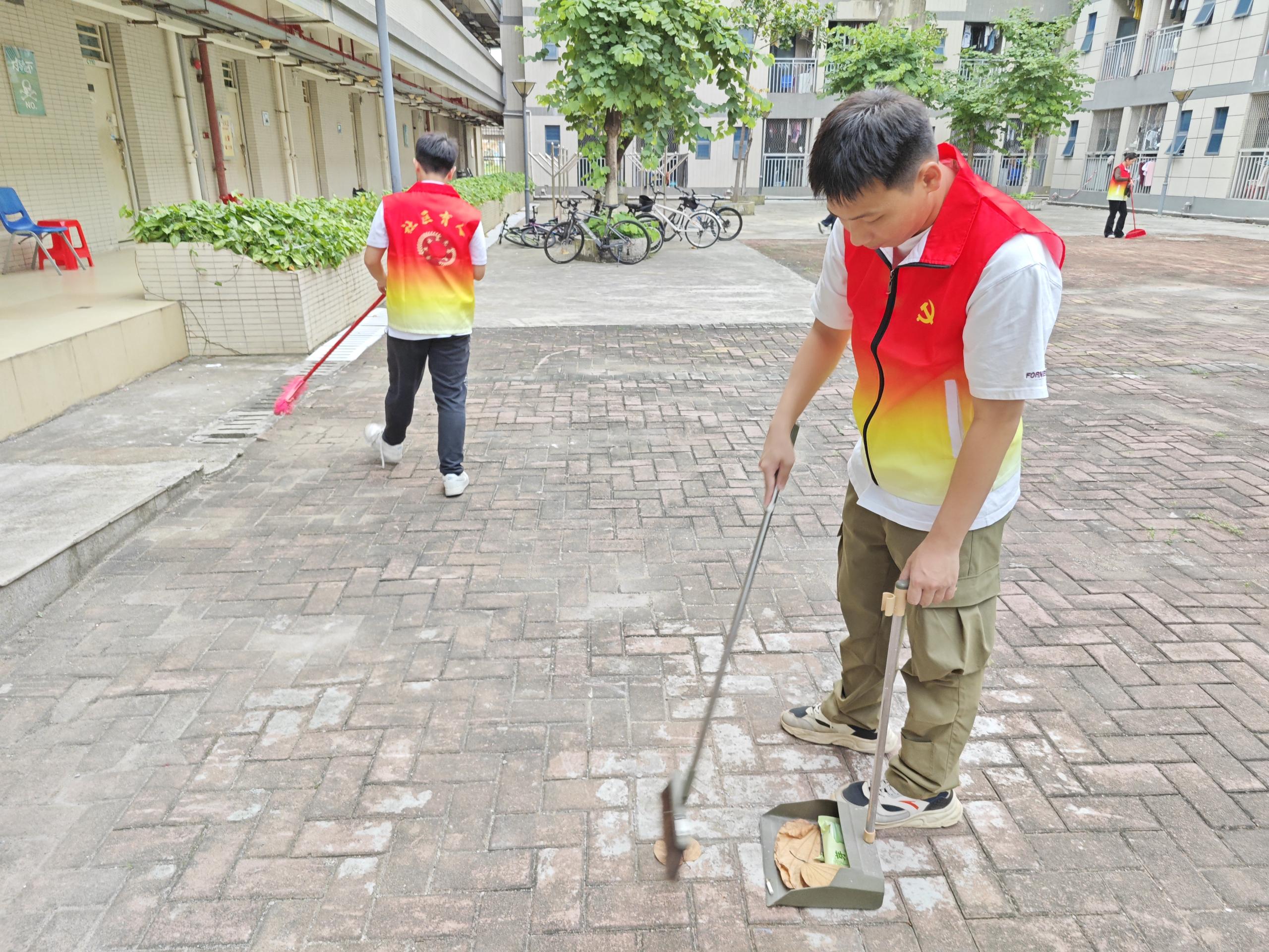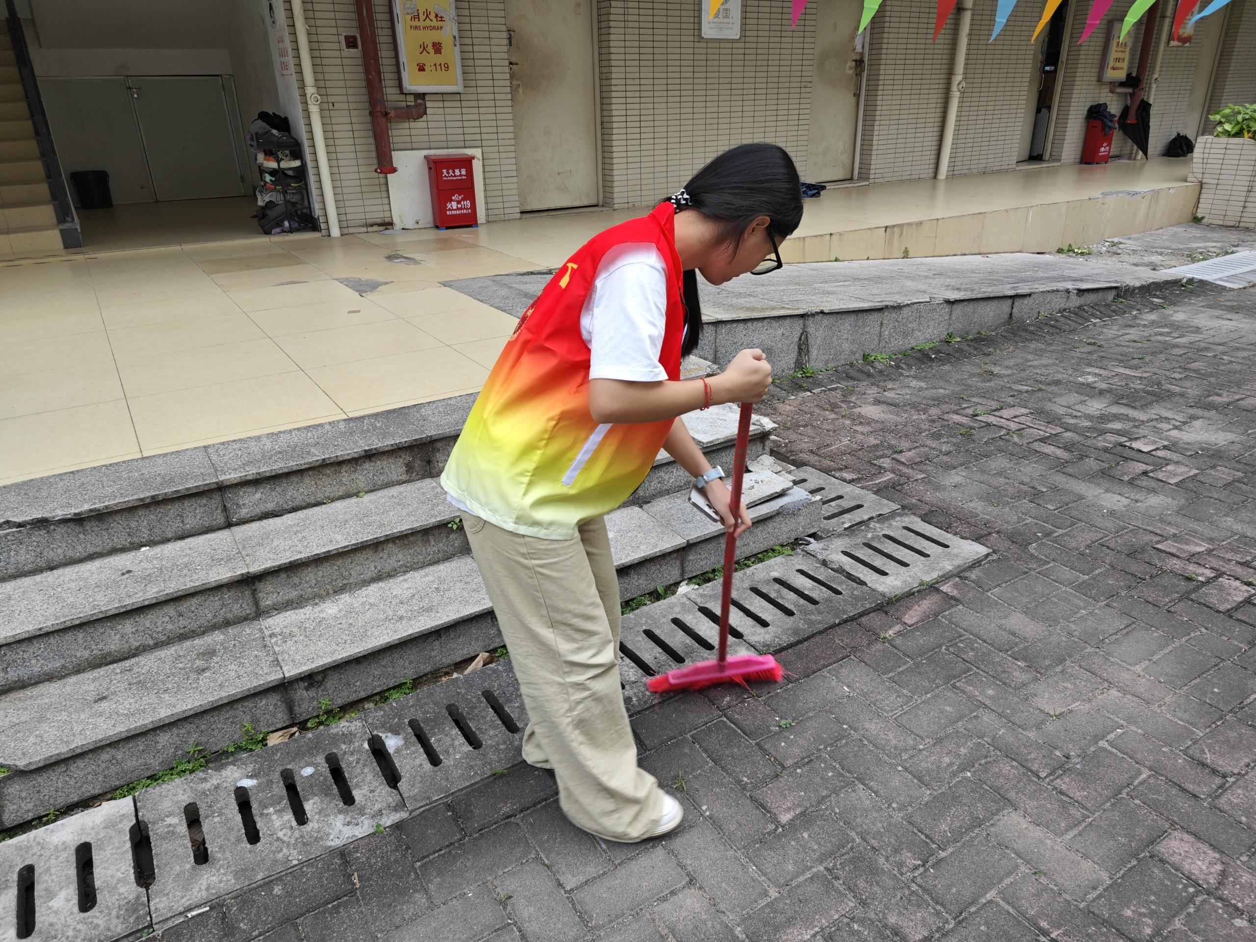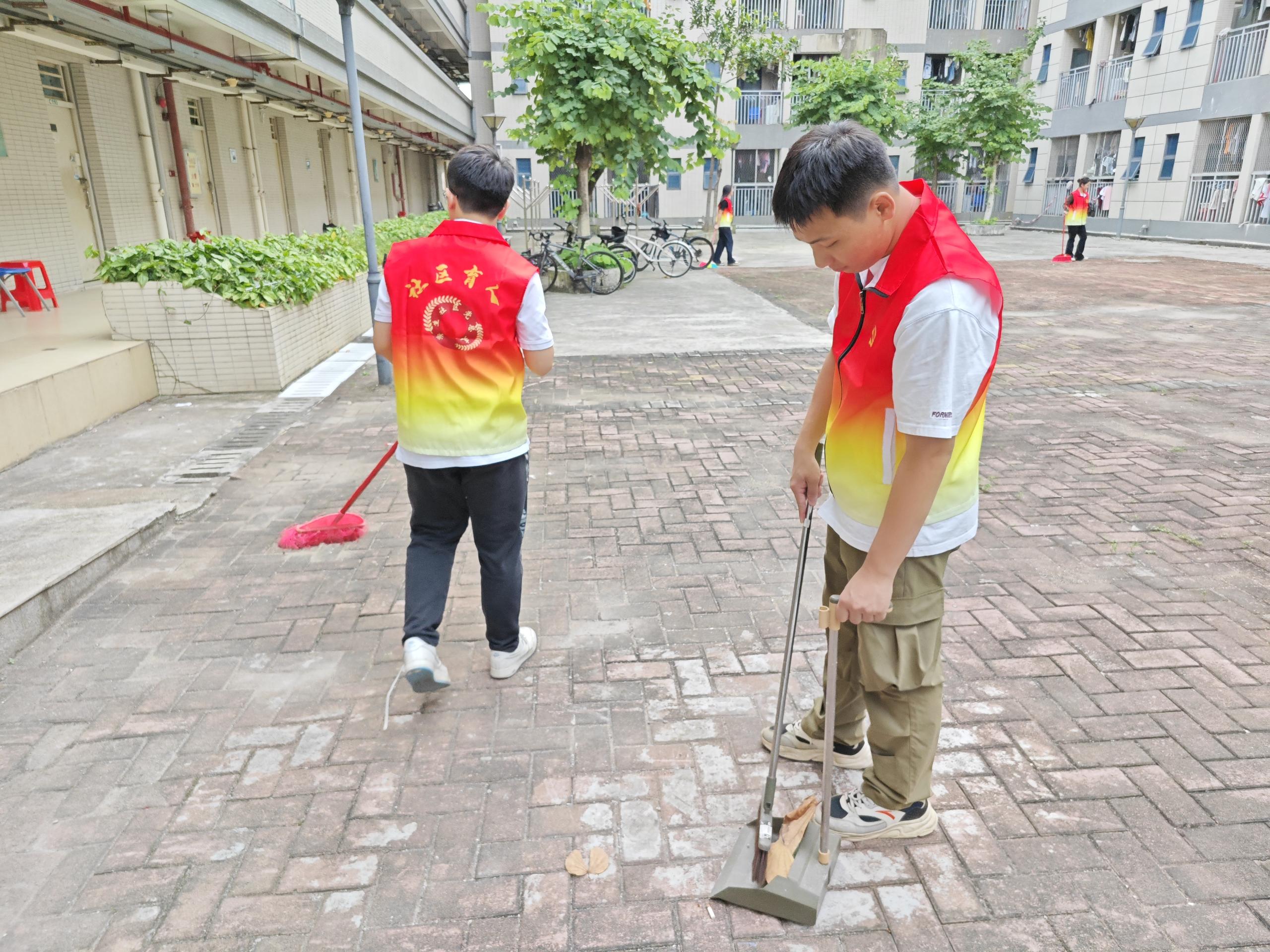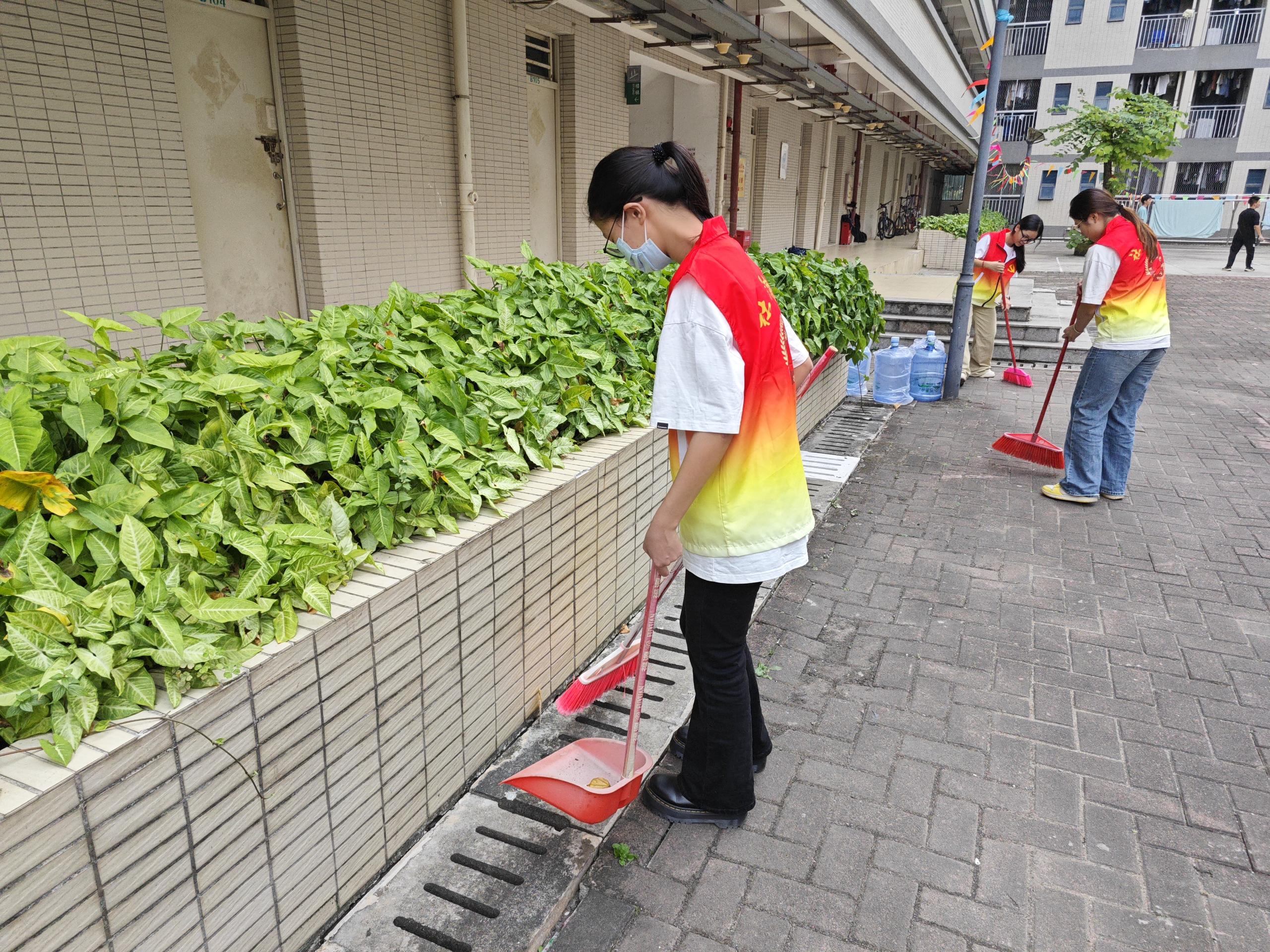 在清理过程中,同学们不放过任何一个细节,无论是楼道角落里堆积的灰尘,还是宿舍门口隐藏的垃圾,都被一一清除。他们用自己的双手和汗水,为社区环境的改善贡献着力量。