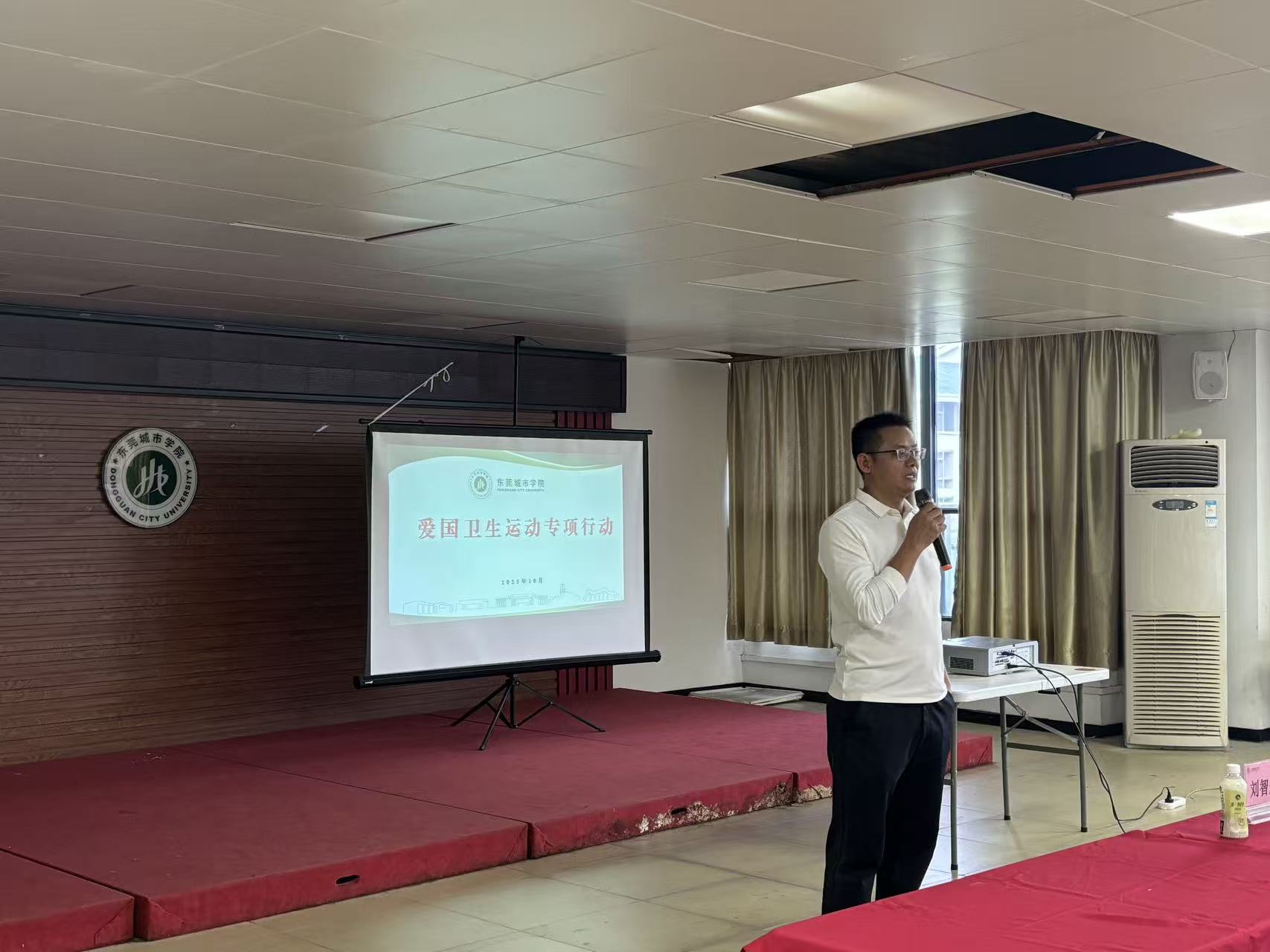 10月29日下午,东莞城市学院学生社区爱国卫生运动专项行动动员大会在学生活动中心招聘大厅准时举行。