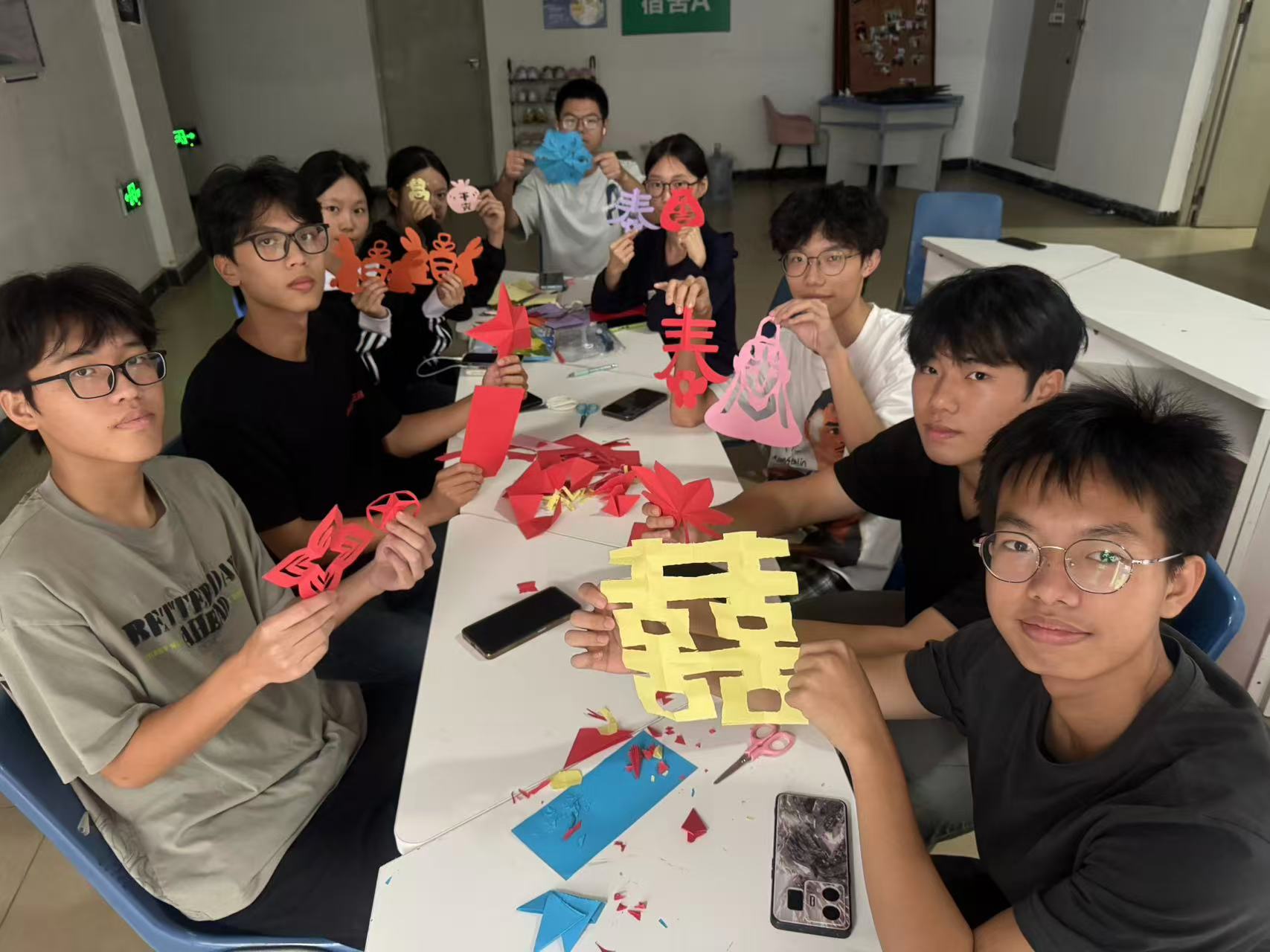 艾草棒槌制作组的同学们手持艾草、棉线,在老师的指导下层层缠绕、压实定型,专注的神情中透着对传统工艺的敬畏;剪纸组的同学则拿起剪刀,从简单的纹样勾勒到复杂的图案剪裁,指尖翻飞间,一张张红纸蜕变为精美的艺术作品。整个社区弥漫着浓厚的劳动氛围与文化气息。
