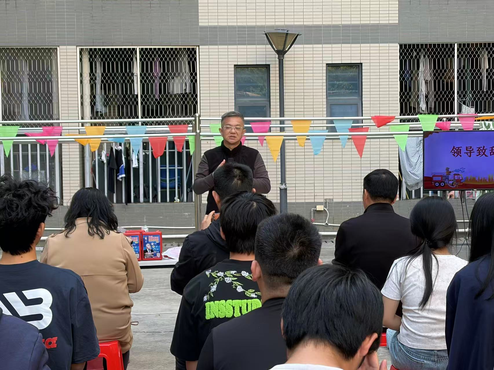活动开始之前,副校长康贤刚在致辞中强调:“消防安全是校园安全的‘生命线’,更是社区和谐的‘压舱石’。希望通过本次活动,让每一位师生都成为消防安全的‘践行者’和‘传播者’,共同守护平安校园。”