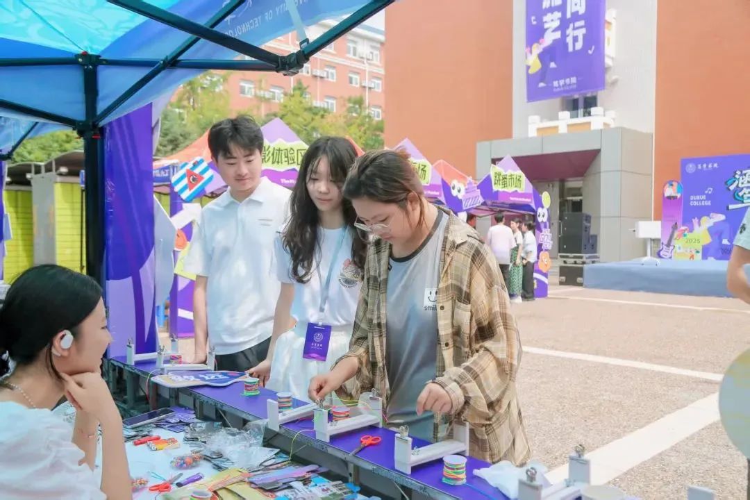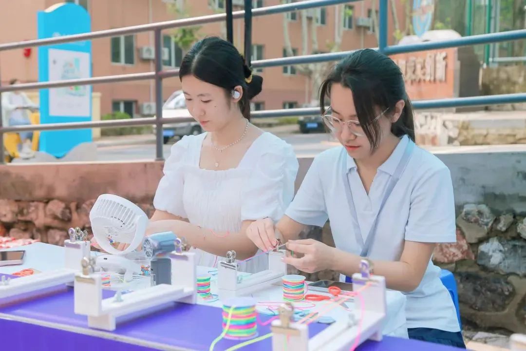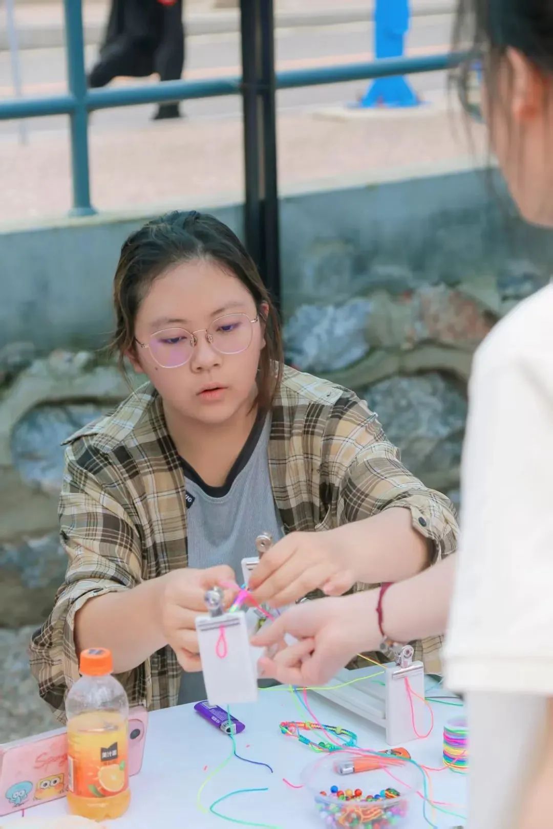 在手工编织区,彩线在同学们的掌心流转,在穿、绕、打结的节奏下让零碎的线团蜕变成精致的物件,同学们眼中闪烁的光,比正午的阳光更明亮。