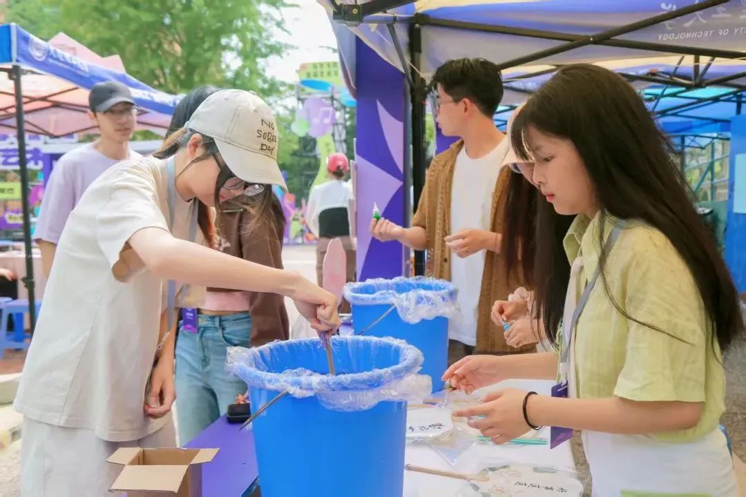 在绘画体验区,同学们用丙烯捕捉夏日光影,每一幅作品都是对青春最好的独白。