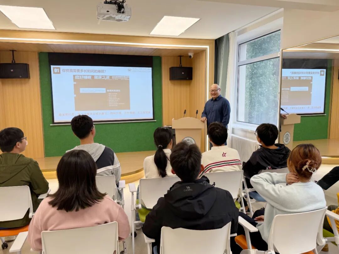 此外,心理中心邀请大连市第七人民医院的主任医师们开展心理沙龙和医生进校园活动,加强医校协同,守护师生心理健康。在“告别失眠:从成因到对策”心理沙龙中,王骞医生从失眠成因入手,结合典型案例,深入浅出地讲解科学助眠技巧。单春杰、董晔医生为师生提供一对一的咨询辅导。