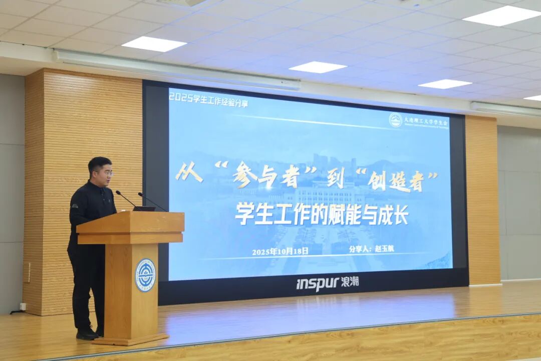 赵玉航老师以自己大学四年的学生工作经历为切入点,从“校学生会到大工学生工作”、“常规活动到大工品牌活动”、“个人经历谈学生干部成长”三个方面,为同学们讲述了一堂生动的实践课。