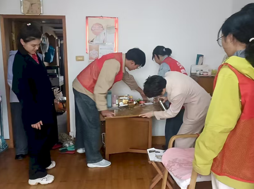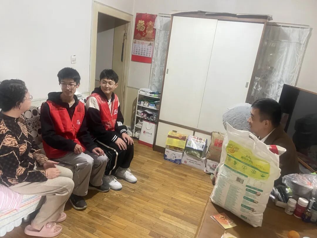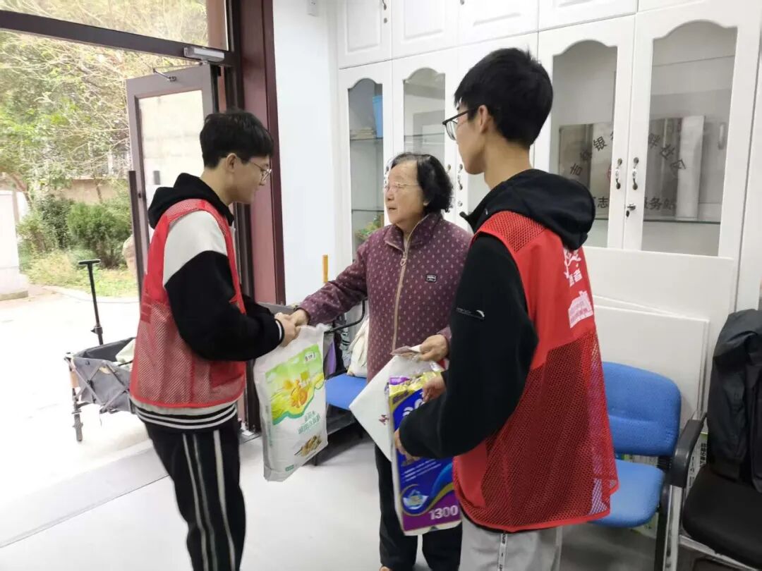 前往慰问的同学们在社区人员的带领下,带着米、面、油、抽纸等生活物资与大煜书院定制纪念品走进高龄独居、困难老人家中。同学们向老人们致以亲切问候,并与他们亲切交谈,还主动为一些行动不变的老人整理了房间,老人们对此非常感动。