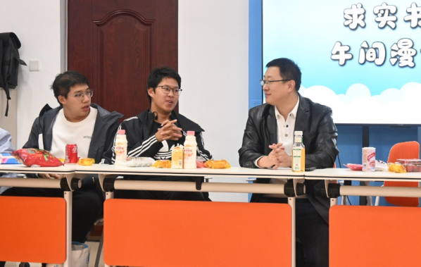 当午间的铃声刚落, “午间漫谈”院长交流活动在轻松的氛围中正式展开。于午间休憩时分,师生相聚对谈,席间备有简餐茶点,交流自然随意。这场简短而温馨的互动,在午后的宁静中为青年学子答疑解惑,营造了一段富有温度的校园时光。