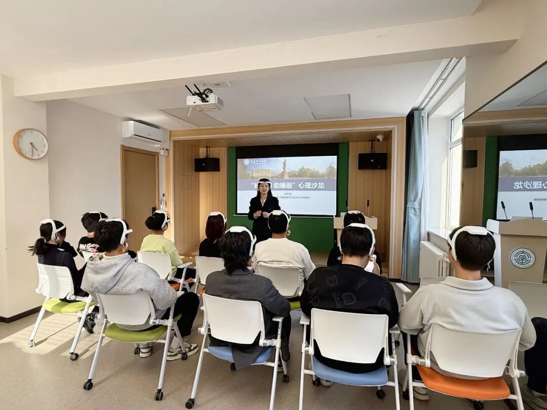 3月20日,由心理健康教育与咨询中心张欣怡老师带领的“好心晴 助睡眠”主题心理沙龙,在中心生物反馈训练室举行。活动围绕睡眠健康与压力调节设置。先由老师讲解睡眠基本规律、失眠表现,解析情绪与睡眠的相互影响,澄清睡眠误区并指导同学们科学评估睡眠状态,带领同学们开展放松训练。随后参与者使用团体生物反馈仪监测压力与放松水平,体验腹式呼吸和沉浸式放松。最后同学们依次体验深睡小屋的助眠床、助眠减压舱,在舒缓环境中释放压力。沙龙将科普讲解、技能训练与科技体验深度结合,帮助同学们树立科学睡眠观,掌握实用的睡眠调节与压力管理方法,切实收获身心舒缓的体验。
