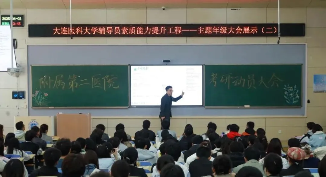 为深入推进辅导员队伍专业化、职业化、专家化建设,夯实辅导员学生工作基本功,聚焦提升思政引领力,党委学生工作部开展辅导员素质能力提升工程之主题年级大会展示活动。4月2日中午,主题年级大会展示第二讲在教学区A205继续举行。附属第二医院2022级学生工作办公室主任葛长乐副教授以《奋斗一年半 研路我相伴》为题进行考研动员和规划指导。党委学生工作部部长钟凤宏、副部长霍小舟及全体辅导员现场观摩。