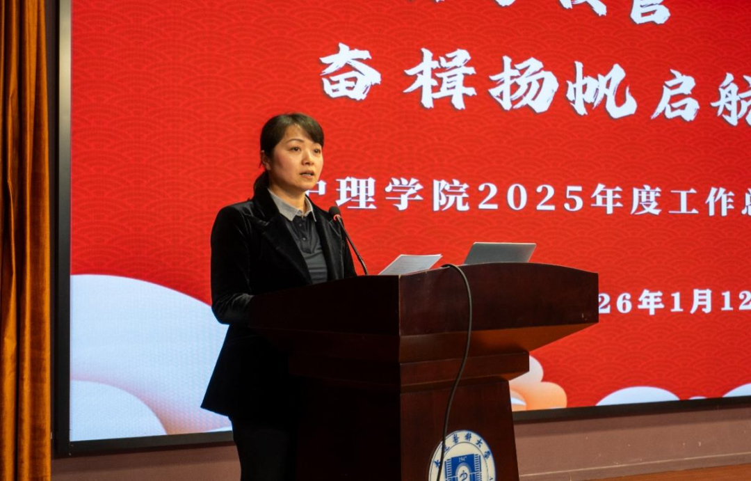 会上,副院长(主持工作)史铁英作了题为《凝心聚力 奋楫扬帆》的工作总结报告。在感谢学校领导的关怀指导和各部门支持帮助的同时,系统回顾了过去一年学院在党建引领、队伍建设、人才培养、对外交流合作、学科建设、文化建设等方面取得的显著成绩,深刻总结了学院发展的经验与启示,并对学院“十五五”期间的重点目标和任务进行了规划和展望。她表示,站在“十五五”规划的新起点,学院将以更加坚实的步伐、更加豪迈的气魄和更加卓越的成绩,奋力谱写大医护理高质量发展新篇章!