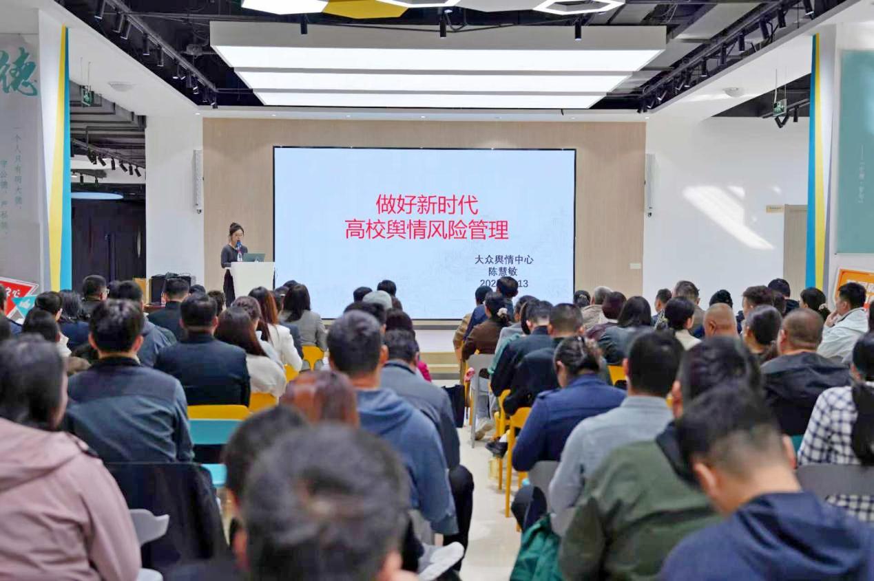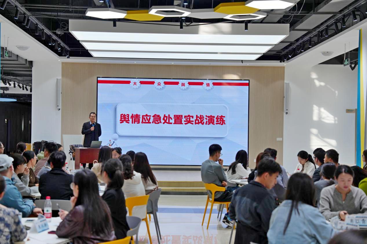为进一步提升我校宣传思想文化工作队伍和辅导员队伍网络意识形态工作能力水平,有效防范、处置和应对网络舆情风险,切实维护网络意识形态安全,10月13日,学校在大学生就业赋能中心组织开展舆情应对能力培训与教育舆情应急处置实战演练活动。山东省互联网传媒集团舆情中心首席舆情分析师陈慧敏、李婷婷受邀作专题培训及舆情演练,学校党委委员、副校长蒋涛涛,学校党委委员、宣传部部长冯琨出席活动。
