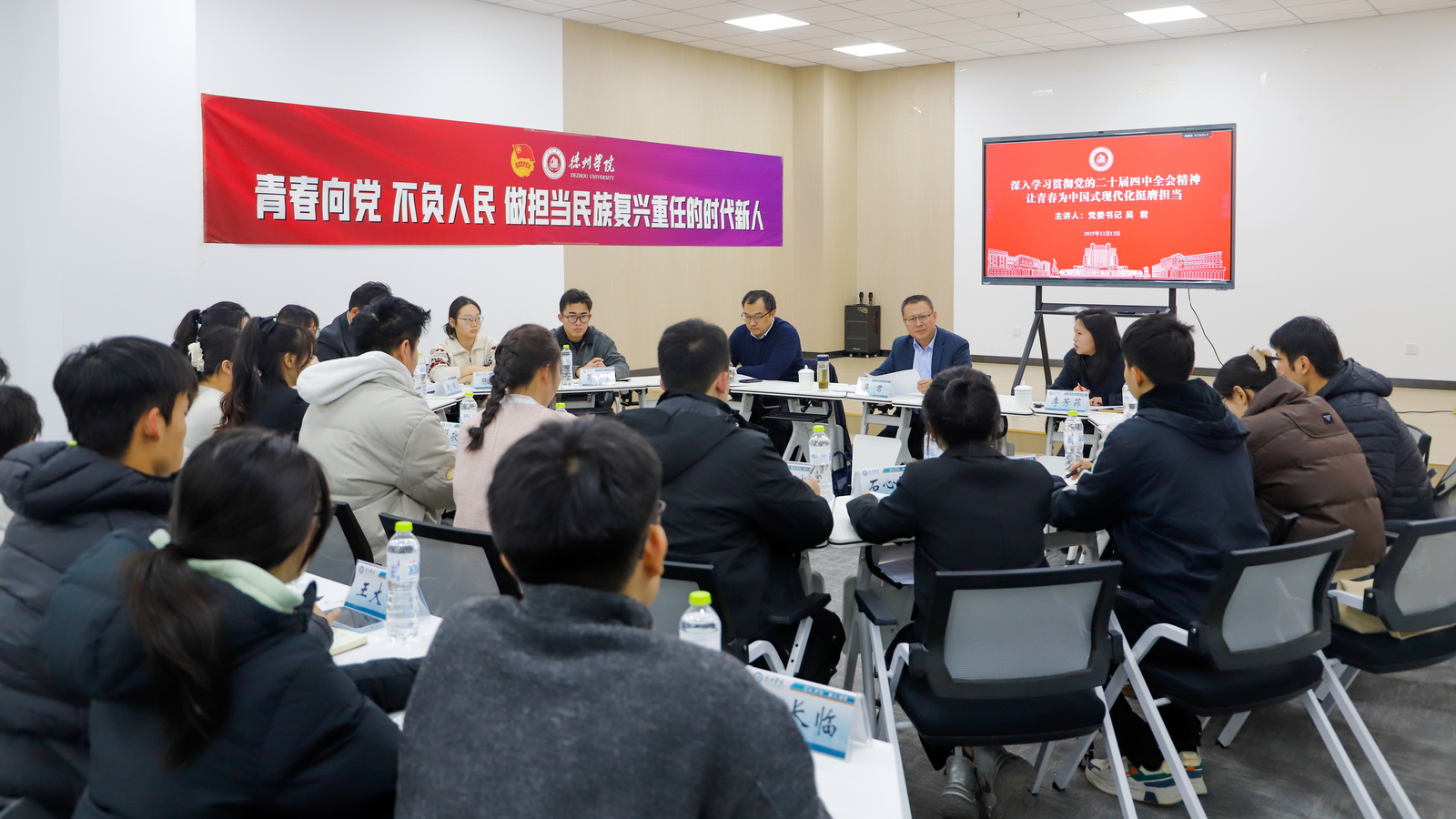 吴君围绕党的二十届四中全会的重大意义、“十五五”时期在中国式现代化进程中的特殊重要地位、学校高质量发展的思路举措、青年学生的责任担当等方面进行全面解读和系统阐释。他指出,青年学生群体有朝气、有闯劲、有潜力,作为推动国家发展和社会进步的重要力量,要厚植家国情怀,将人生价值的实现融入国家“十五五”发展远景目标,努力提升自身成长与国家发展之间的适配度。要锤炼过硬本领,将创新能力、创新思维、创新视野的培养摆在核心位置,在科技攻关、理论创新、实践创造中取得创新发展。要坚持全面发展,主动适应学生成长多元评价体系,努力成为德智体美劳全面发展的高素质人才。要深刻认识青年一代在全面建成社会主义现代化强国新征程上肩负的时代责任,擦亮青春底色,为中国式现代化挺膺担当。