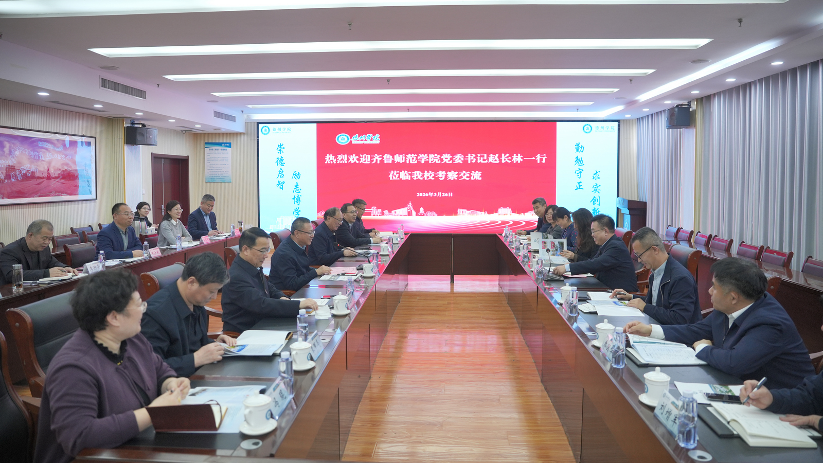 3月26日,齐鲁师范学院党委书记赵长林一行来校考察交流。校党委书记吴君等在家校领导参加交流。