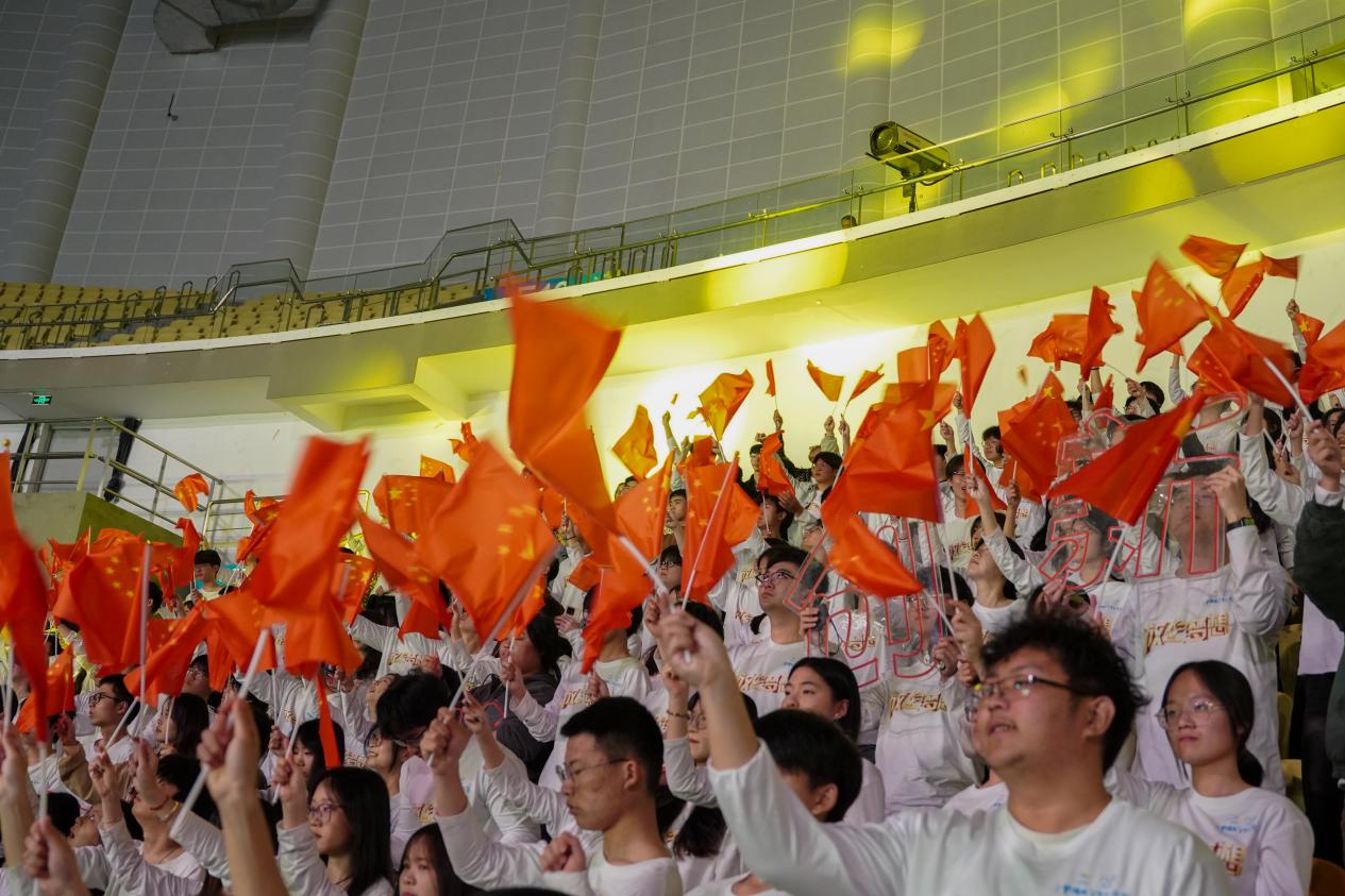 同学们歌声高亢激昂,旗帜飘扬显豪情。全场齐喊口号,展现出无尽青春活力。全方位、多角度地展现新一代青年担当奉献、开拓进取、奋斗不息的时代风采,令我们感受到了大学生及电视和网络视听艺术工作者奋进新征程、建功新时代,为实现中华民族伟大复兴的中国梦而努力奋斗,让青春在新时代的征程中绽放更加璀璨的光芒的坚定决心。