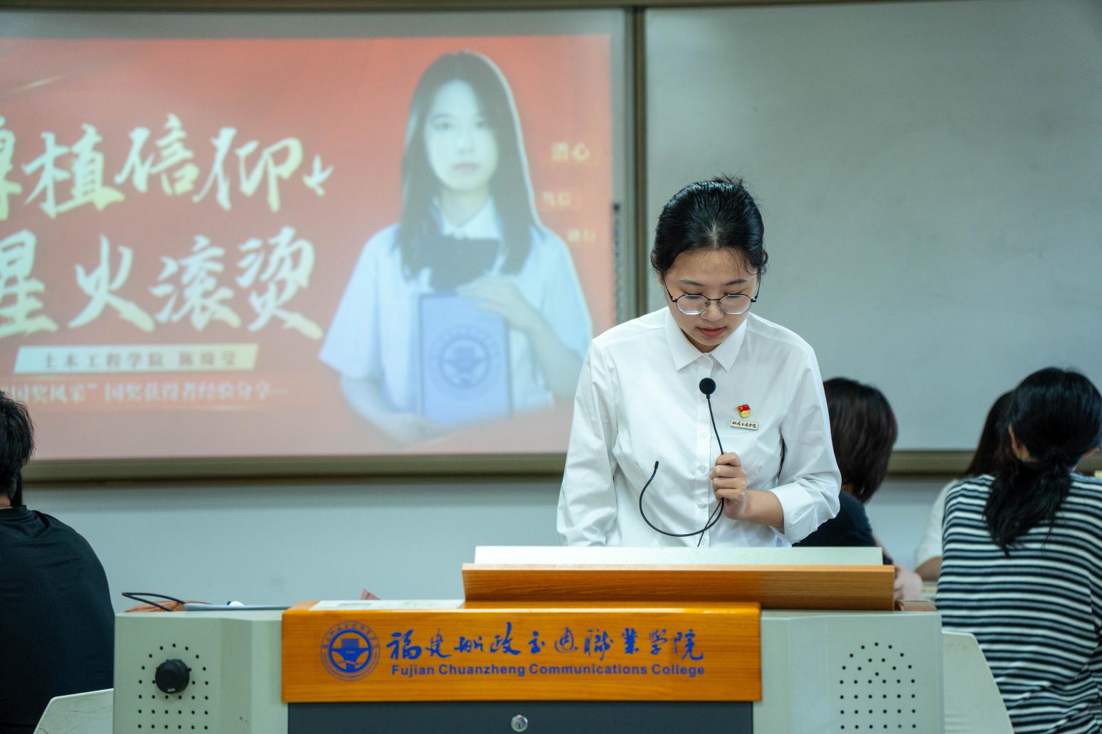 随后,陈绮莹、李楠、林诗铠、陈耀东等国家奖学金获得者代表,依次在学习心得、社会实践、创新创业比赛等方面分享了自己的成长经历。