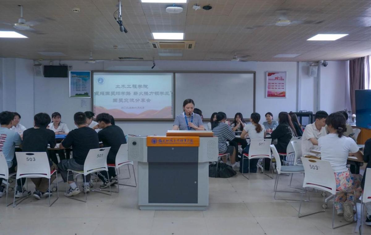 为充分发挥国家奖学金获得者的榜样引领作用,搭建优秀学子经验传递的桥梁,引导学生树立全方位发展目标。2025年6月9日,土木工程学院开展“星耀国奖昭学路 薪火接力领学风”国奖交流分享会。学院党总支副书记任颖卿、全体辅导员、2025届国家奖学金学生代表以及2023级、2024级学生代表参与本次分享会。