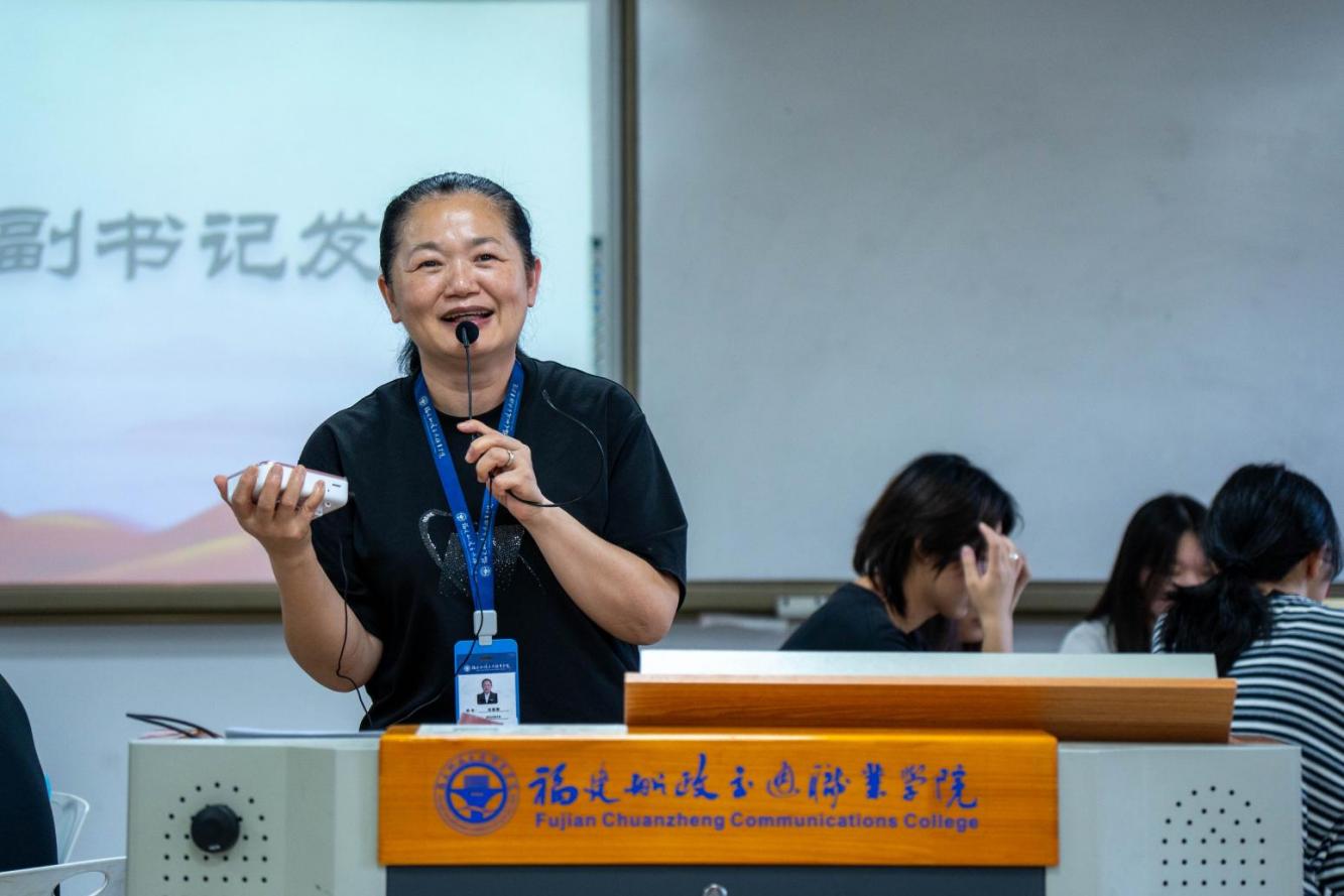 陈绮莹同学表示要坚持以思想引领成长、以专业铸就实力、以实践提升能力,在德智体美劳方面全面发展。