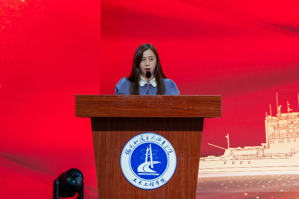 教师代表卢娜老师用真挚的语言回顾了与学生们共处的绘图教室、实训基地时光,勉励大家牢记“求是、自强、求实、创新” 的船政校训。希望毕业生们坚守对土木行业的热爱,肯钻研、敢担当,走出精彩人生。
