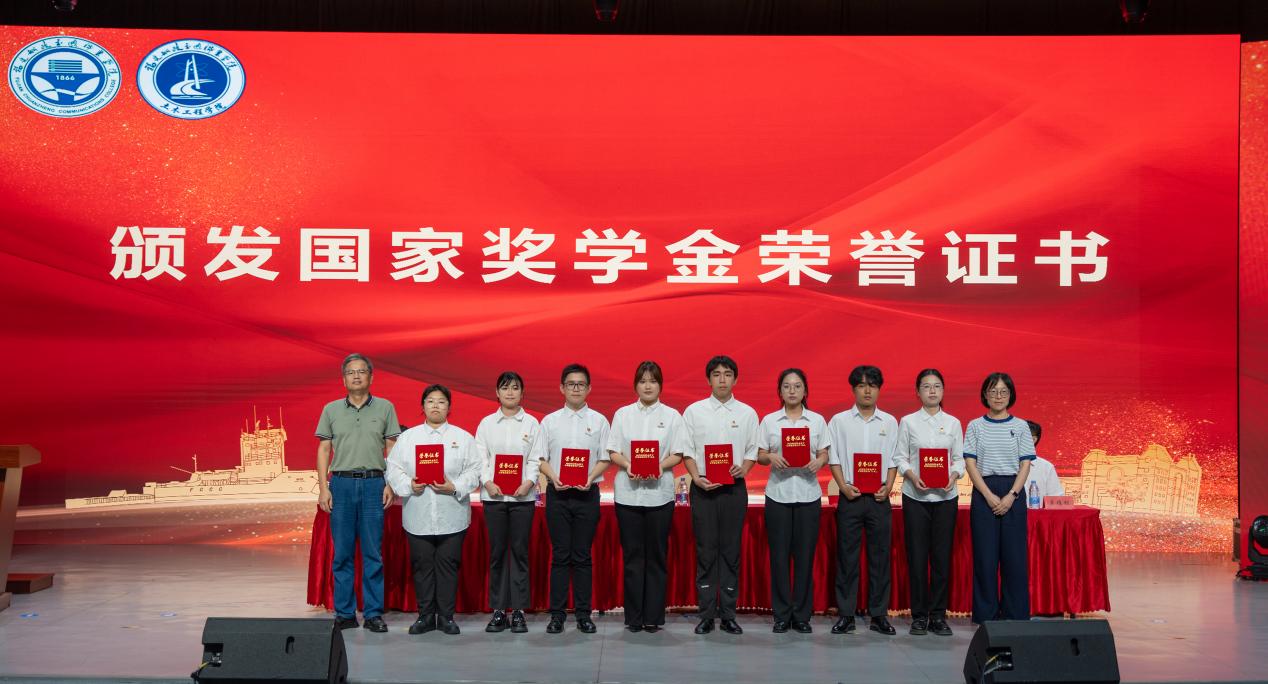 高杰书记、黄颖院长为国家奖学金获得者学生代表颁发荣誉证书,希望获奖的同学在新的征途上再接再厉,取得新的成绩,希望土木学子以获奖学生为榜样,勤奋学习、积极进取,争做德智体美劳全面发展的社会主义建设者和接班人,展现青春作为、彰显青春风采、贡献青春力量,书写青春篇章。