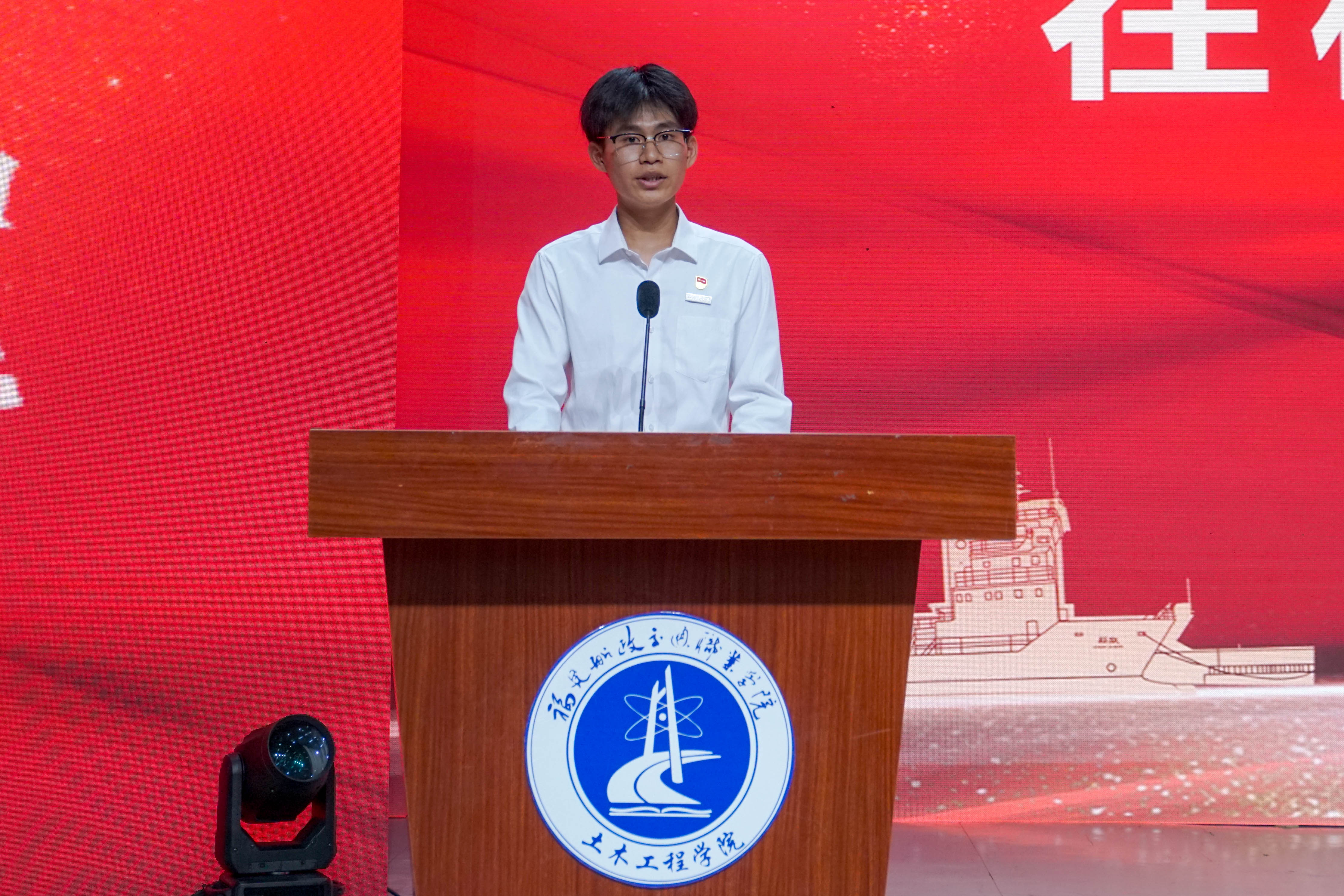 在校生代表张镰竞同学感谢成长的历程中学长学姐们的悉心帮助和指导,向学长学姐们献上最诚挚的祝福,愿他们在未来的道路上始终保持赤子之心,以坚韧为帆,以热爱为桨,不惧风雨,无畏前行。