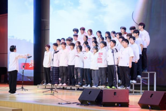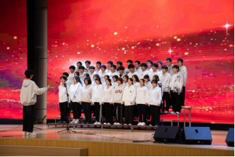 晚会核心环节,大数据技术2504班、大数据技术2503班等多个班级依次登台,唱响《我爱你中国》《强军战歌》《紫荆花盛开》等经典红歌。激昂高亢的旋律响彻体育馆,同学们精神抖擞、意气风发,以饱含深情的演唱传递对祖国的无限热爱与敬意。演唱间隙,各班巧妙融入校歌《天麟之歌》片段,将爱国情怀与校园情谊紧密相连,用铿锵歌声诠释红色信仰,展现新时代青年矢志报国的远大志向。