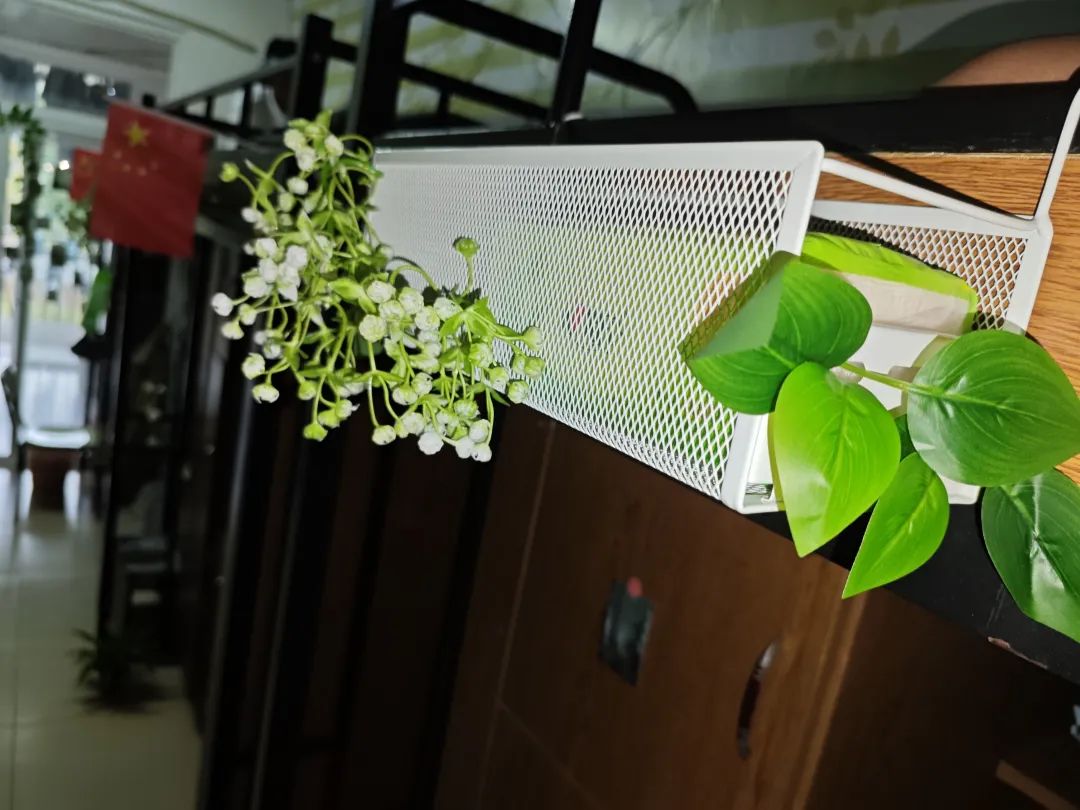 装饰理念:宿舍核心理念是“人与自然和谐共生”,宿舍内摆放精美的花和绿植,净化空气,营造清新爽朗、让人放松的绿色空间。