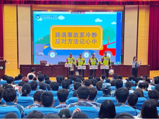 阜阳市公安局交警支队颍州大队中队长侯金强,通过真实交通事故影像资料,为同学们带来一堂生动的交通安全课。在互动环节中,同学们踊跃举手,积极应答,现场气氛十分热烈。
