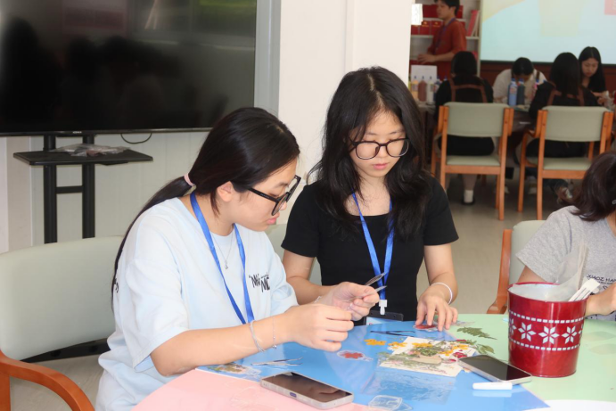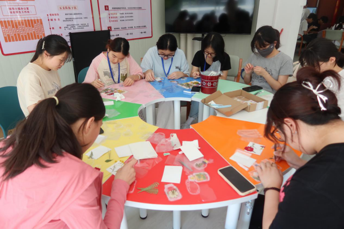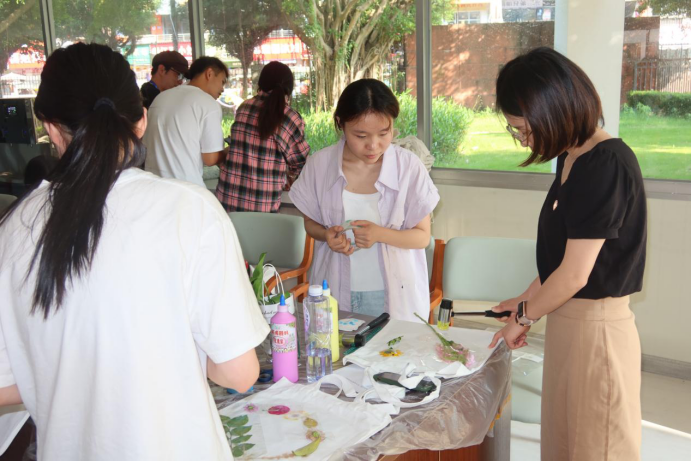 5月中旬励志社区以"以手愈心"为内核,通过心花书签的"美育润心"、植物拓染的"植纹映心"、陶艺塑形的"触感赋能"三大模块,构筑起五感联动的心理疗愈场域,现场欢声笑语不断,学生参与其中。