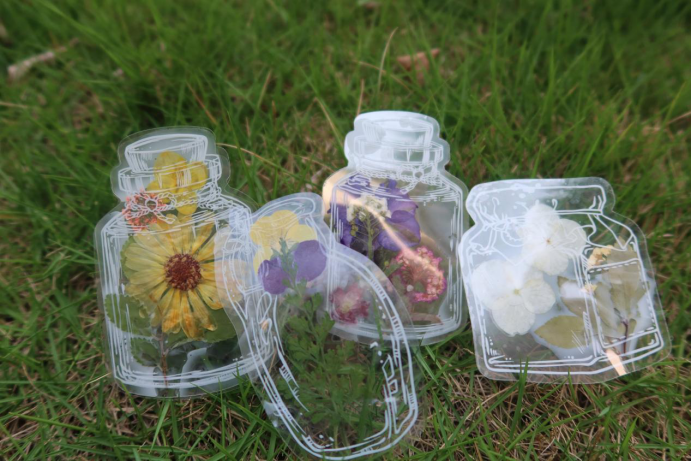 学生以春日为灵感,精心挑选樱花、雏菊、蕨叶等植物素材,将其与彩砂、干花分层铺入透明玻璃瓶中。随着指尖轻捻、层层堆叠,花瓣与枝叶的形态、色彩在光影中舒展定格,最终封存于一枚枚玲珑书签之中。学生们在创作中专注感受植物的纹理与香气,通过自然元素的组合表达情感,让季节的浪漫成为可触碰的记忆载体。完成后的书签既可作为阅读伴侣,亦成为承载春日心绪的治愈信物,引导学生在方寸之间发现生活美学,于细微处感知生命流动的诗意。