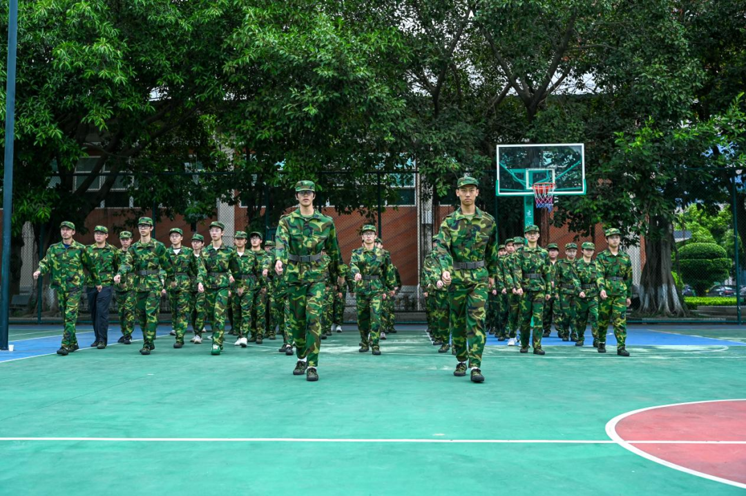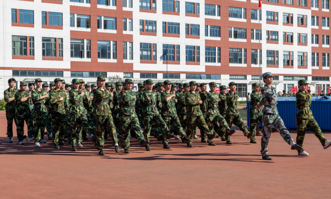 当晨光划破天际,训练场早已响起整齐的脚步声。迷彩服与朝阳交相辉映,新生们挺直的脊梁、坚定的目光,构成了校园里最动人的风景线。站军姿时纹丝不动的坚守,齐步走时铿锵有力的步伐,军体拳时刚劲利落的动作 —— 每一张照片里,都藏着少年们不服输的韧劲。