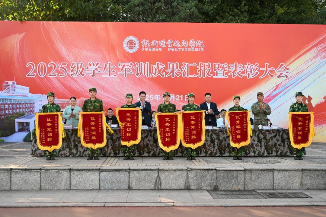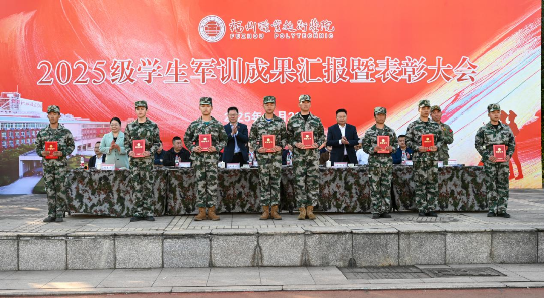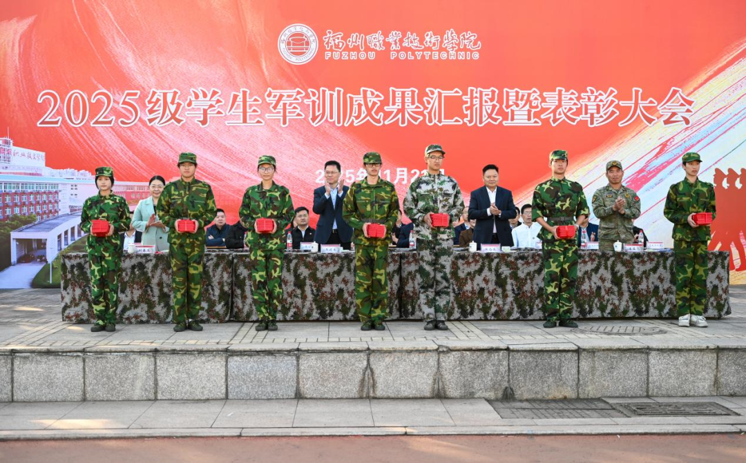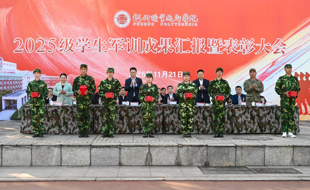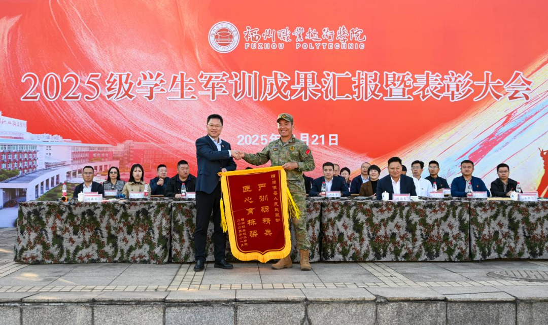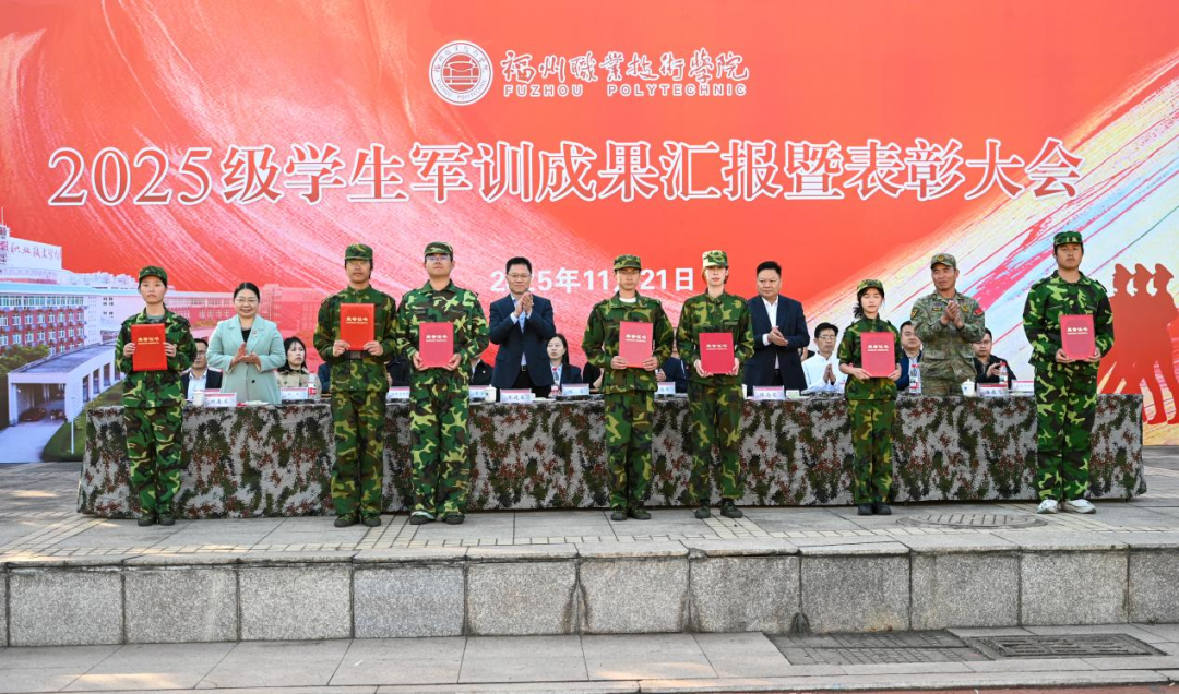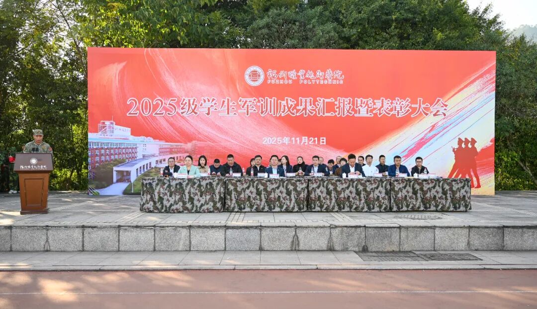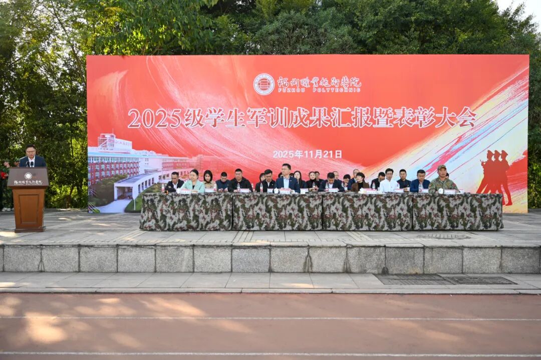 11月21日,福州职业技术学院2025级军训成果汇报暨表彰大会在田径场圆满收官。校党委书记王建生,校党委副书记、校长陈念东,校党委副书记刘春兰,闽侯县人武部组训干部潘亚飞,各职能部门负责人及各二级学院党政负责人出席大会,与参训学子共赴这场青春“检阅礼”。大会由刘春兰副书记主持。