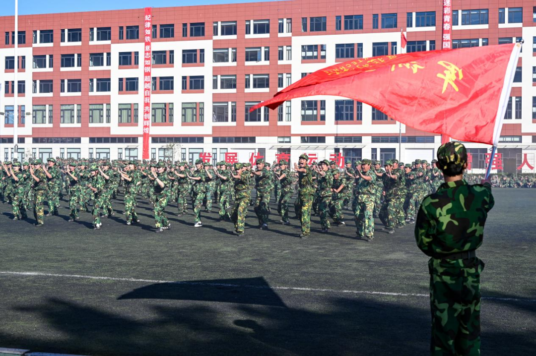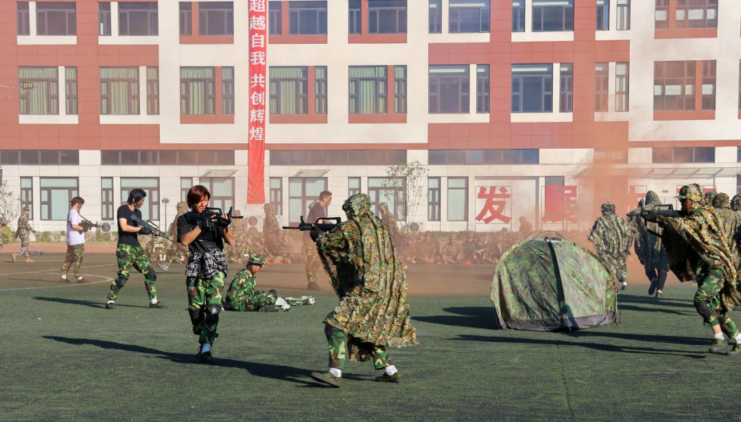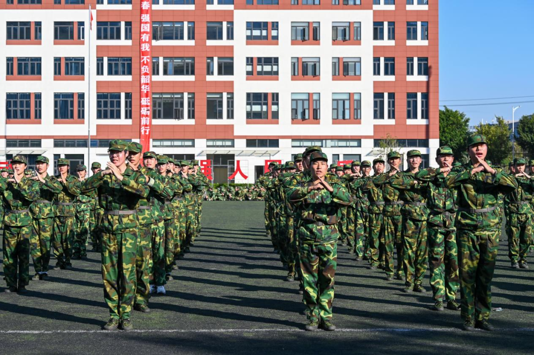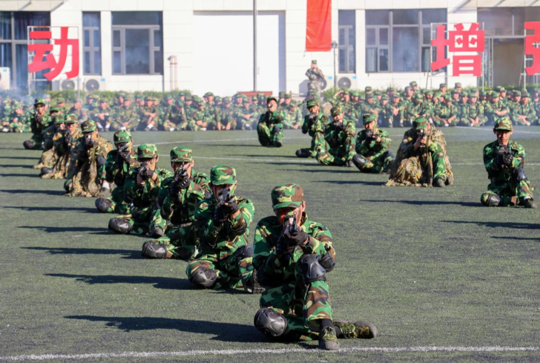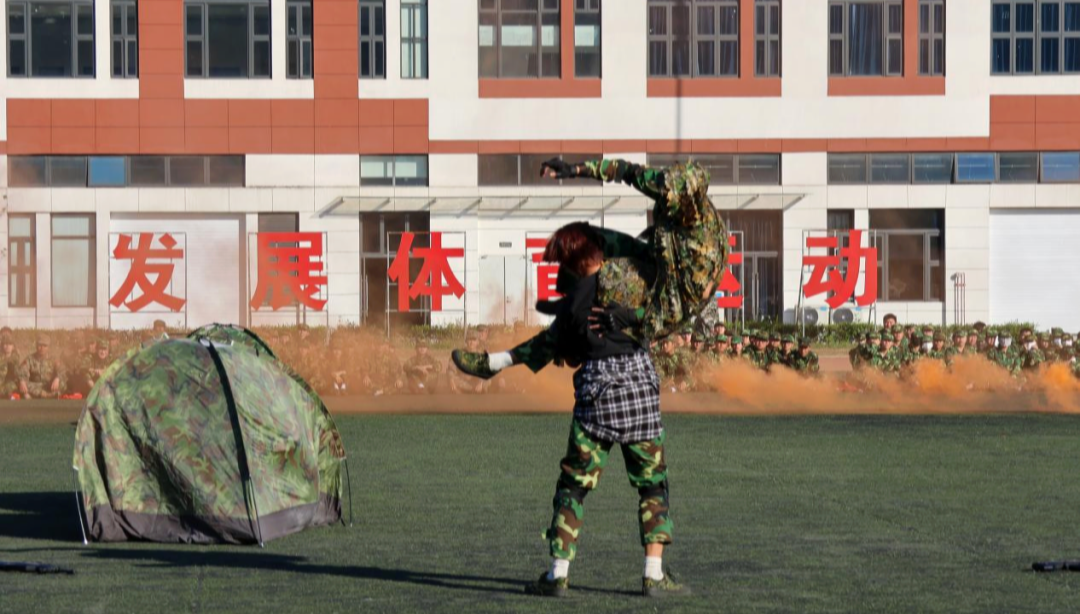 分列式率先登场!学子们迈着铿锵步伐,喊着嘹亮口号,精神抖擞地走过主席台;队列示范班动作精准划一,尽显军人风范;军体拳、刺杀操、擒敌拳接连上演,出拳有力、踢腿生风;战术基础动作展示中,卧倒、匍匐连贯利落,仿佛置身实战,赢得阵阵喝彩。