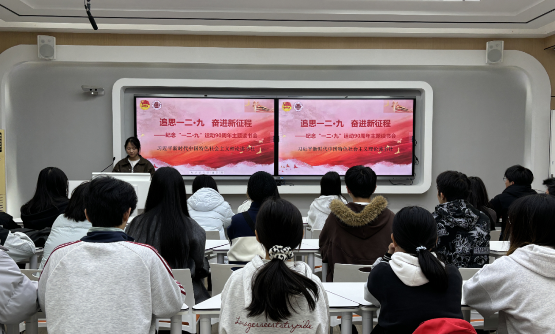读者协会举办“书香忆峥嵘,青春话担当”读书分享会,校习近平新时代中国特色社会主义思想读书社开展“追思一二九,奋进新征程”主题读书会,学子们围绕“一二・九”运动历史背景,精选红色经典书籍潜心研读,在交流分享中解读革命先辈的爱国情怀,结合自身成长经历畅谈新时代青年的责任与使命,营造出“以读促学、以学传情”的浓厚氛围,让爱国理念在书香浸润中深入人心。