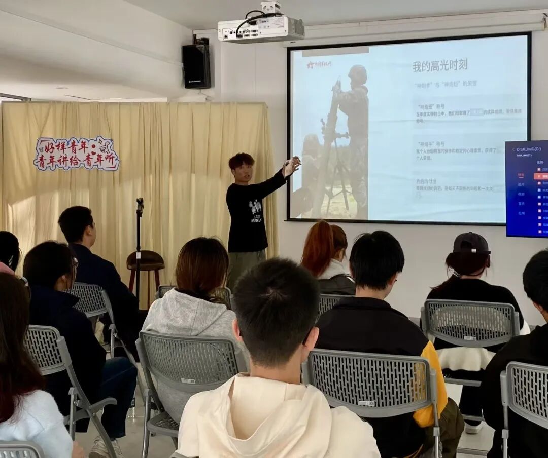 分享会伊始,两名校“八一社”退役士兵学生代表带来别样的青春感悟。他们从入伍准备的坚定抉择,讲到军营里紧急集合、野外拉练的淬炼,用“凌晨站岗时的星光”“暴雨中抢险的坚守”等鲜活细节,诠释军人的责任与担当。“军营教会我的坚韧,是攻克学业难题的底气”,他们结合复学后从“学业困惑”到“专业前列”的逆袭经历,展现“退伍不褪色、退役不退志”的青春本色,让在场学生深受触动。