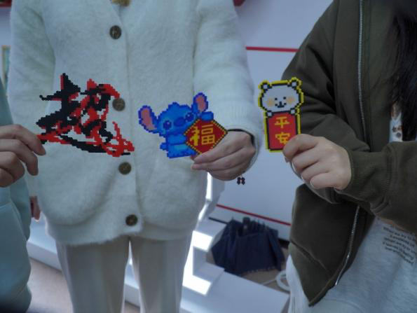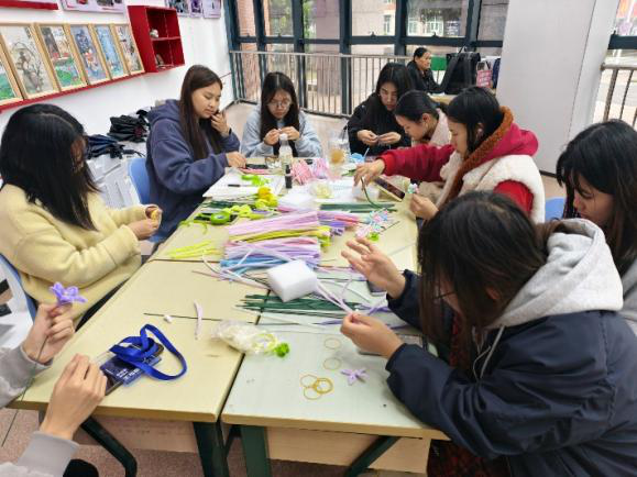 校团委特设“徽章制作工坊”,组织现场制作专属徽章,以创意为笔,定格青春;机电工程学院开展“指尖生花·螺钿映彩”活动,同学们制作干花书签与螺钿胸针,感受传统工艺与现代审美融合;建筑工程学院推出“珠联璧合”串珠体验活动,女生们用晶莹珠串编织美好祝愿;信息工程学院与特殊教育学院联合举办拼豆DIY与扭扭棒花艺区,参与者在动手实践中释放想象力,收获节日专属礼物;交通工程学院举办“艺绽青春·风采展示”活动,女生们现场创作油画,用艺术表达情感与憧憬。