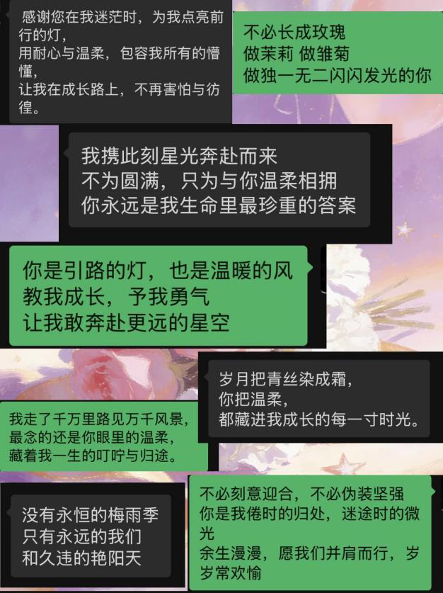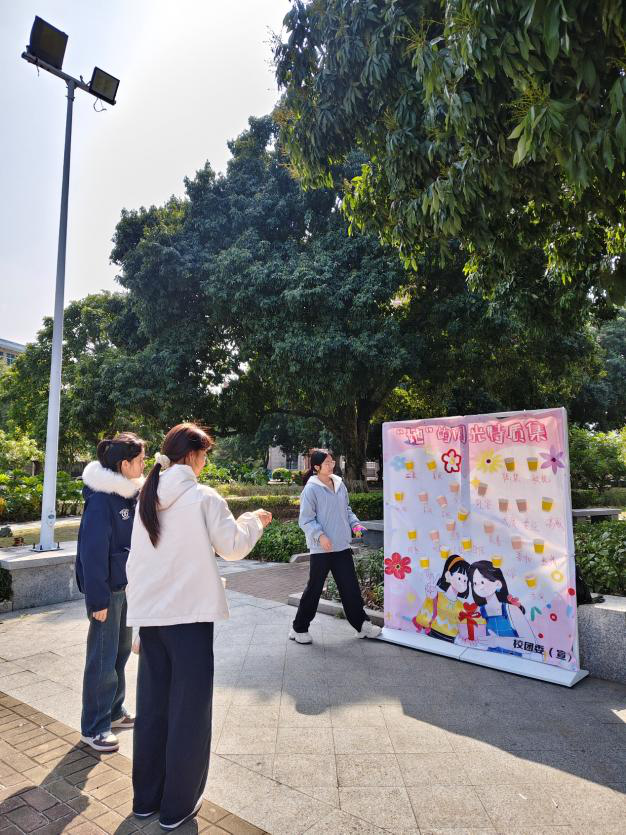 校团委特设“闪光特质墙”,通过游戏的方式,进一步强化了师生对女性力量的认同与赞美。商学院开展“三行情书征集”活动,面向全院征集写给老师、妈妈、朋友或自己的告白,作品情感真挚动人。信息工程学院与特殊教育学院师生写下对自己的期许和对朋友的祝福,汇聚成“爱心海洋”。建筑工程学院设置“时光寄语”环节,女生们收到去年今日写给自己的信笺,在感动中为明年许下新期许,完成跨越时光的自我对话。交通工程学院开展“心向暖阳·心理赋能”活动,老师围绕自我认知、情绪调适等主题进行分享,并通过互动交流引导女生学会自我关怀。智能工程学院通过暖场引导、优点轰炸、纸飞机自我肯定等环节,帮助女生在互动中收获认可、增强自信,在集体中感受温暖与力量。