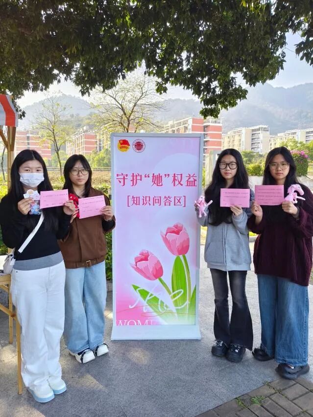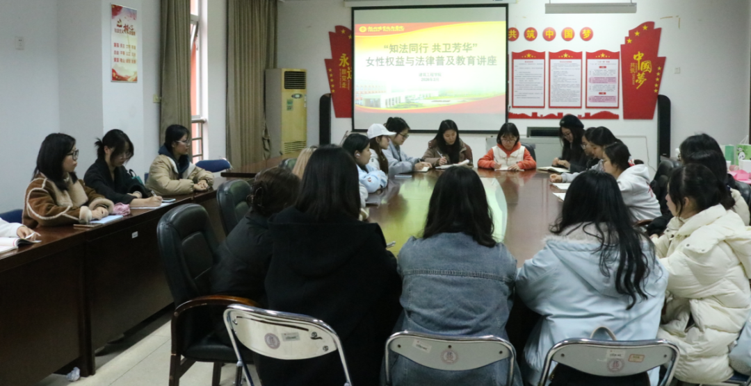 为增强女大学生法治与自我保护意识,女生节期间,学校多场普法活动陆续开展。校团委开展“守护‘她’权益”知识问答,题目围绕女生权益、防护、性别平等知识设计;建筑工程学院举办“知法同行 共卫芳华”讲座,结合《中华人民共和国妇女权益保障法》等法规与现实案例,为女生送法律“护身符”;文化旅游学院通过微宣讲聚焦职场歧视、隐私保护热点,引导女生维权,让法治精神扎根青春心中。
