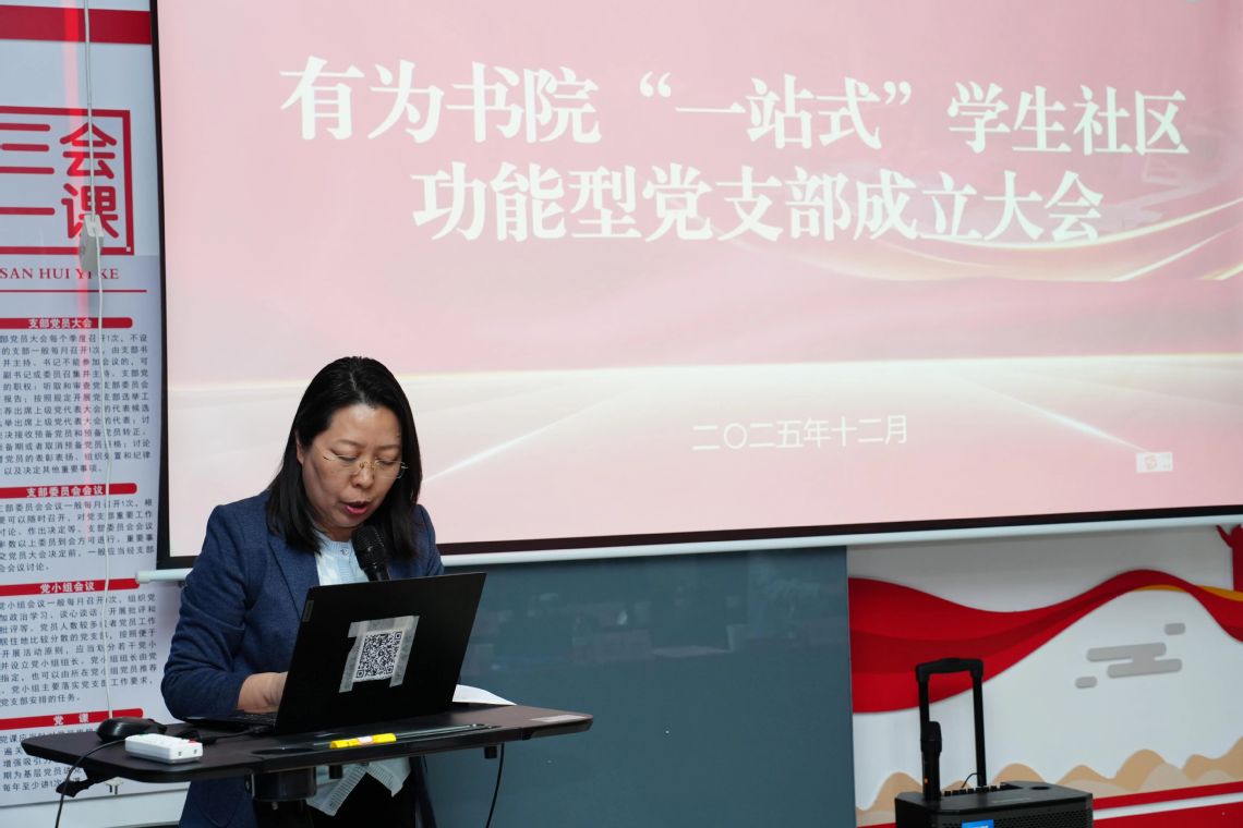 12月16日下午,有为书院“一站式”学生社区功能型党支部成立大会在佛山校区有为书院9栋102党团活动室举行。学生工作部部长钟智,机关党委专职副书记邱启彬,佛山校区党委书记刘大鹏,国际商学院党委书记郭显军,湾区影视产业学院党委书记陈蓉,组织部副部长李爽,学生工作部副部长吴斯娜,党建督导员董锦红,相关学院党委副书记、辅导员以及功能型党支部全体党员参加会议。会议由钟智主持。