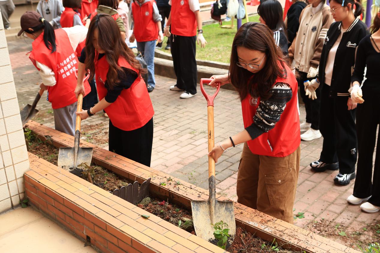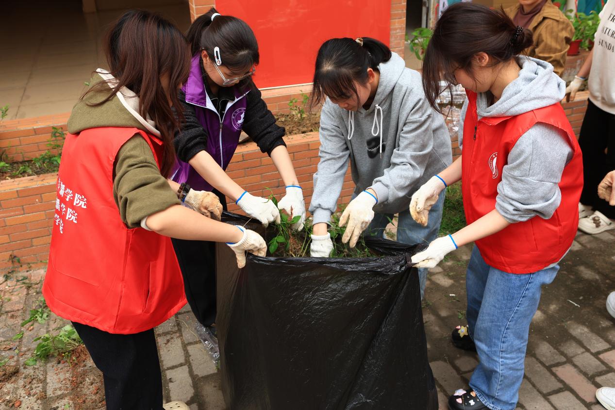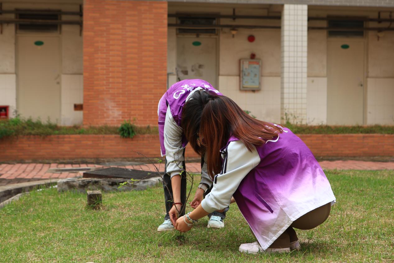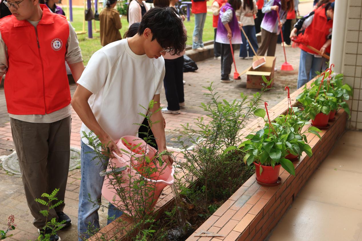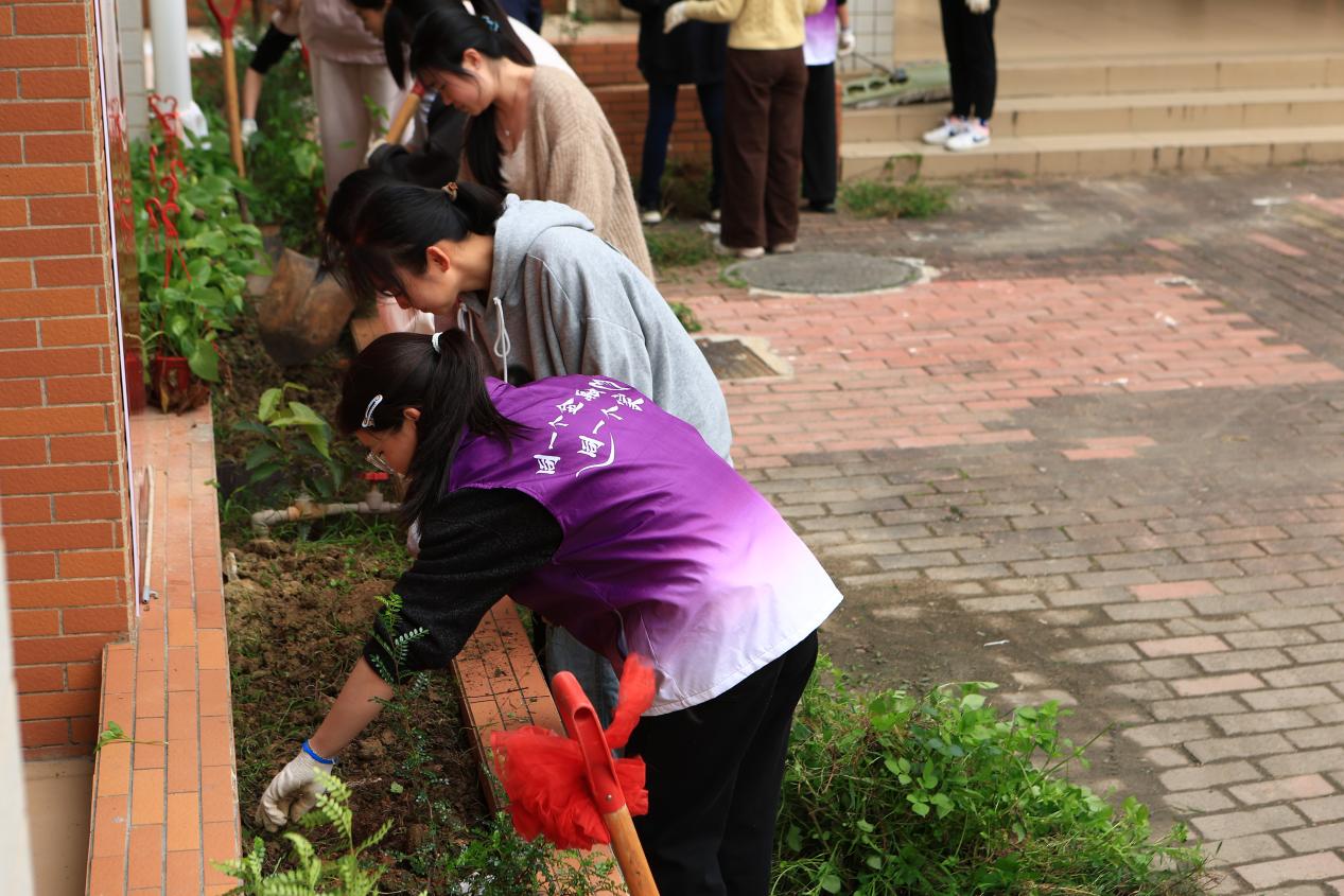 最后,同学们共同清理现场杂草和垃圾,将工具整理归位。通过本次劳动实践,同学们不仅扎实掌握了除草、松土、施肥、栽种等基本园艺技能,有效增强了团队协作意识与环保责任感,对劳动教育的意义有了更具体、更深刻的体会。更重要的是,本次活动以实际行动践行绿色发展理念,为李园社区增添了生机与绿意,为绿美广东生态建设注入了青春力量。同学们在亲手耕耘中厚植生态保护意识,以青年担当助力粤港澳大湾区生态环境保护与绿色发展工作,以点滴实践汇聚共建美丽广东的磅礴动能,让青春在服务社会、助力生态建设的征程中绽放绚丽之花。