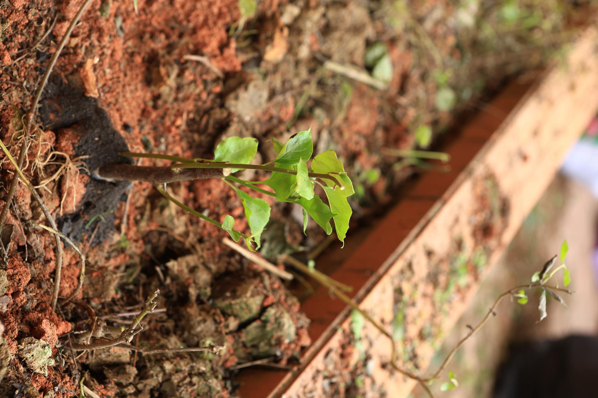 植树组的同学负责在五育工坊门前种植30株三角梅幼苗。大家首先对种植区域进行除草和松土,清理地面杂物,随后分工协作挖坑、放苗、填土、浇水。整个过程有条不紊,同学们在劳动中掌握了基本的种植技巧。