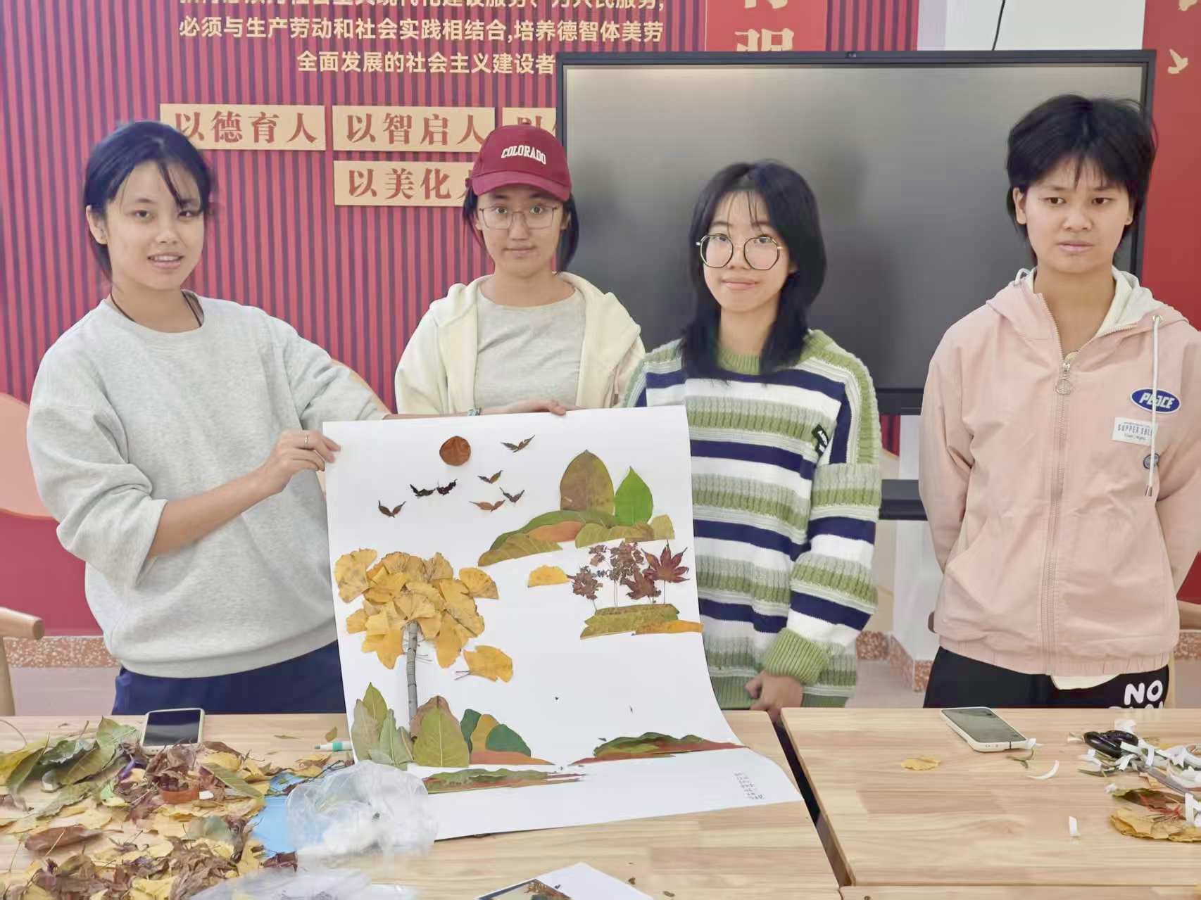这次活动不仅让同学们体验了手工创作的乐趣,也让大家在与自然材料的互动中,收获了创意和友谊,为校园生活增添了一抹温暖的秋日色彩。