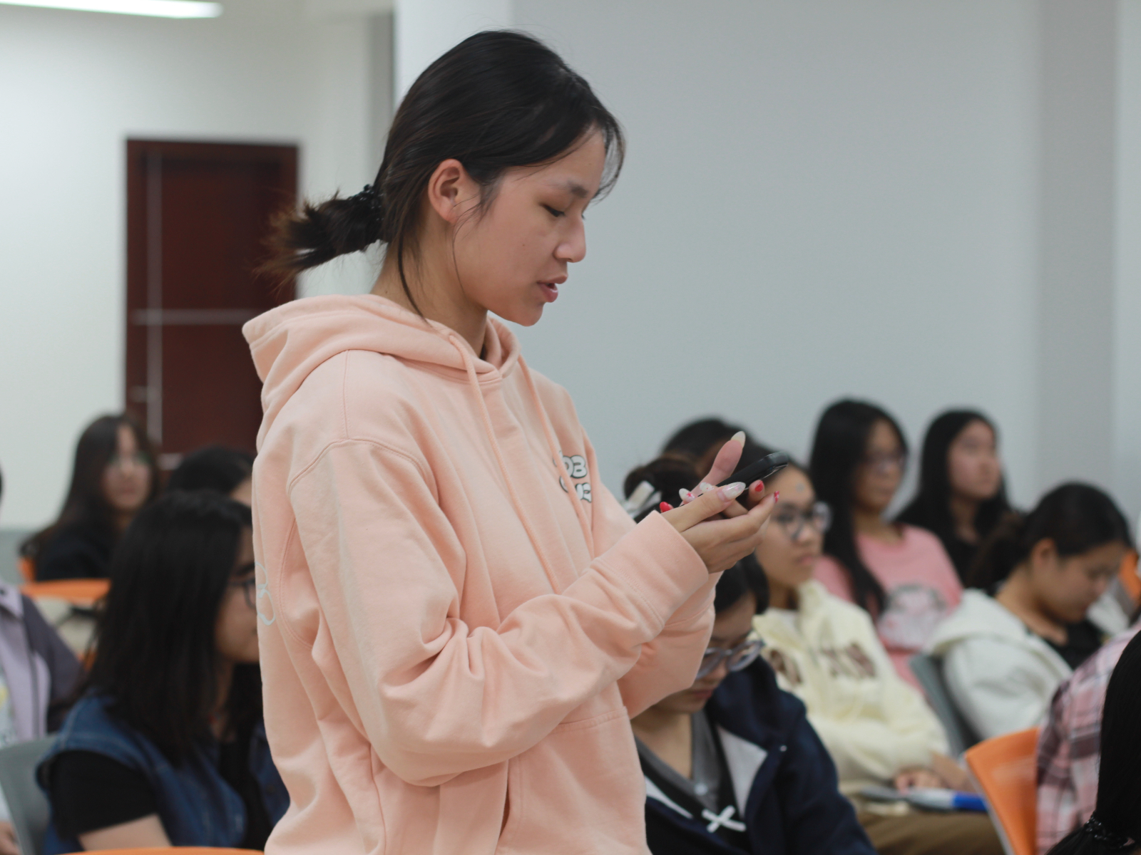 关于学业,叶培滢同学分享了一系列实用建议,平时上课提前5分钟抵达教室并选择前排座位,带着问题听课以精准把握知识重点;期中考试阶段便启动复习规划,摒弃 “临时抱佛脚” 的低效学习方式;主动向成绩优异的学长学姐请教考试的重点与难点,在小组合作作业中积极承担组长职责。这些方法能够帮助我们在学业进阶的道路上稳步前行,始终保持稳健的学习节奏。