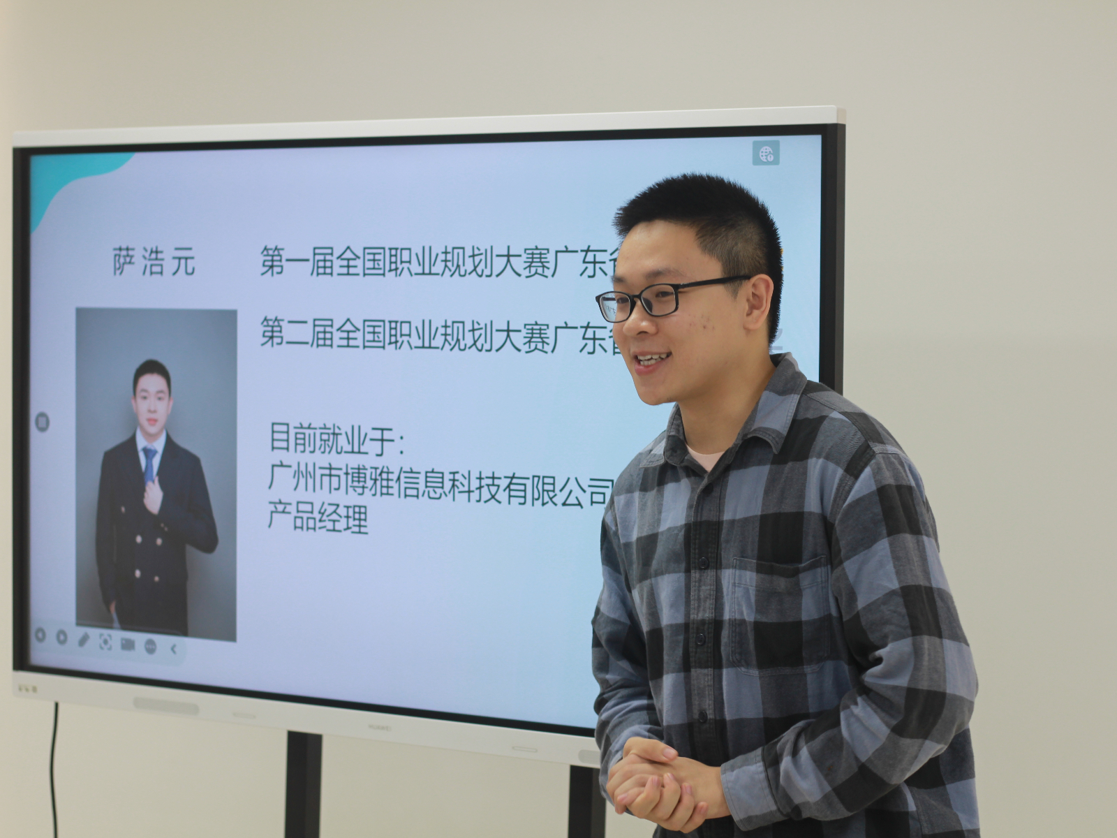 萨浩元学长结合 “教育大数据工程师”“政法大数据开发工程师” 等多届全国金奖案例,为同学们分享就业赛道选题与规划的核心经验:一是选题需锚定新兴领域与民生需求,紧密贴合国家战略方向与行业发展趋势;二是以学术学习与研究、实习与工作经历、竞赛参与、社团与志愿活动等九类行动成果为支撑,搭建全面的能力证明框架;三是重视职业规划的动态调整,通过问题归因与靶向调整,让规划既具前瞻性,又能适配个人成长节奏。