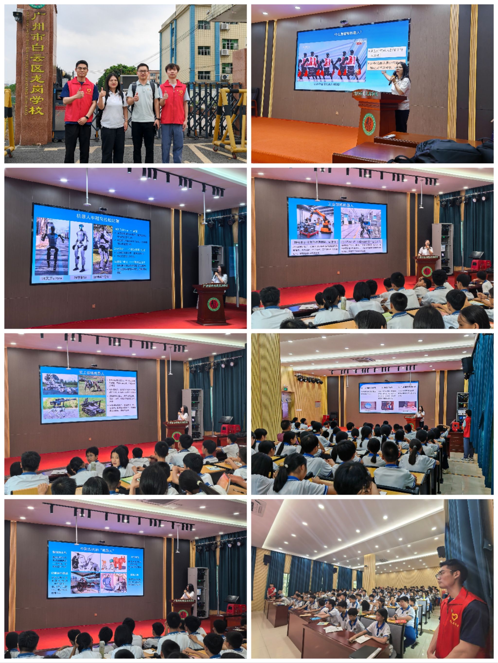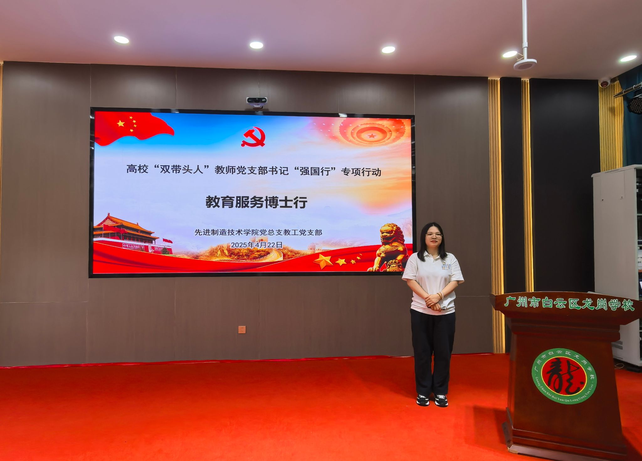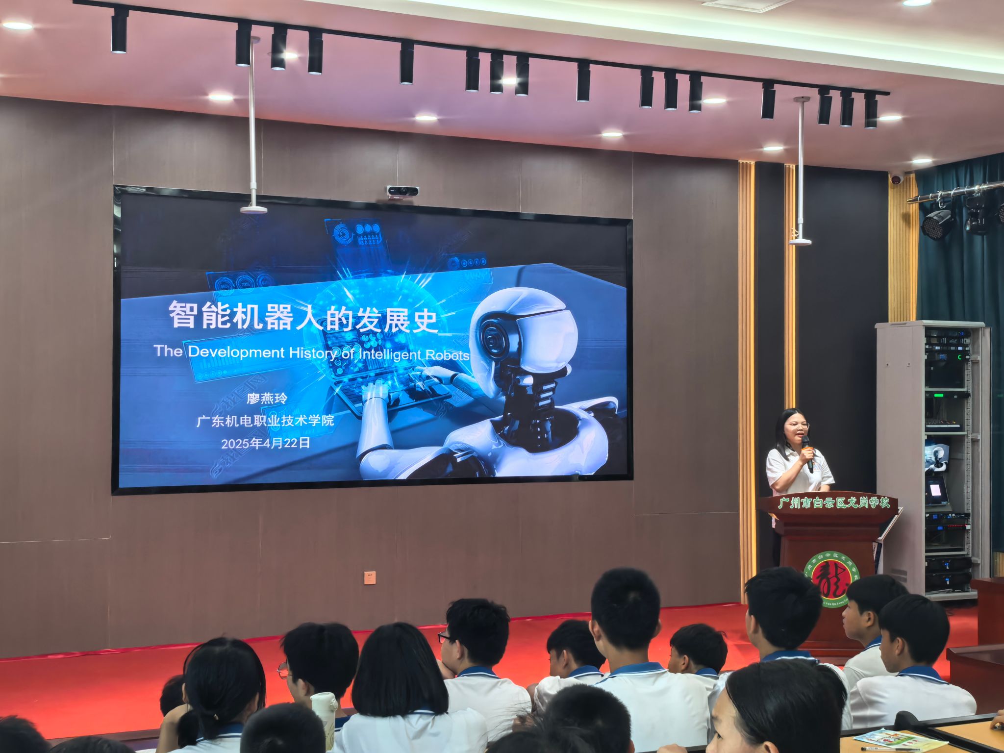 为深入学习贯彻习近平总书记重要讲话精神和党中央决策部署,贯彻落实教育部全国高校“双带头人”教师党支部书记“强国行”专项行动,充分发挥基层党组织的战斗堡垒作用和党员干部的先锋模范作用,推动科普教育进校园,助力青少年科学素养提升,4月22日下午,我校先进制造技术学院党总支教工党支部“强国行”教育服务团队的廖燕玲博士、辅导员陈高峰和学生党员等4人赴广州市白云区龙岗学校开展科普活动,为该校学生带来了一场主题为《智能机器人的发展史》的精彩科普讲座,讲座由廖燕玲博士主讲。活动旨在激发青少年对智能科技的兴趣,培养创新思维,增强科技强国意识。白云区龙岗学校副校长陈长林热情接待了廖燕玲博士一行。