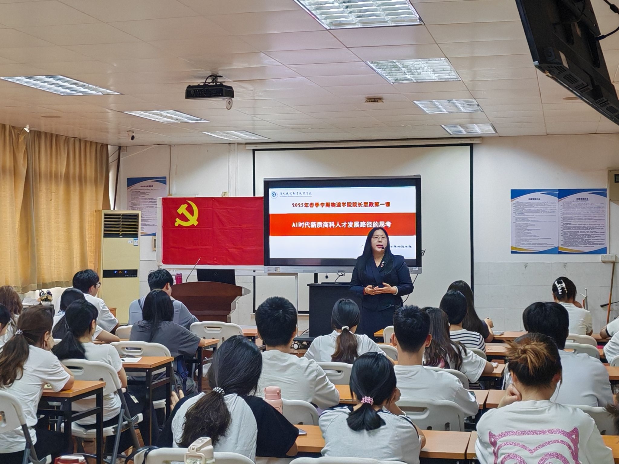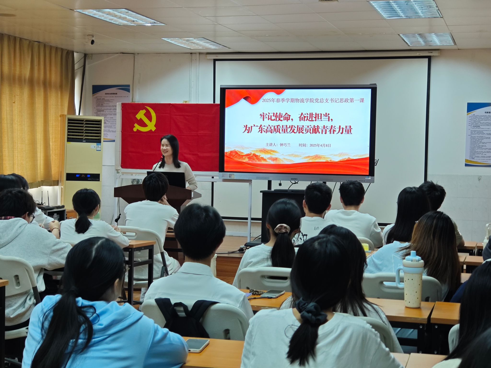 为深入学习贯彻党的二十届三中全会精神,全面落实立德树人根本任务,引导青年学子厚植家国情怀、锤炼进取品格,4月8日下午,物流学院党总支书记钟巧兰、院长郭秀颖在南校区1栋502课室分别以高质量发展与AI时代人才培养为主题,为物流学院百余名入党积极分子讲授2025年春季学期“思政第一课”。