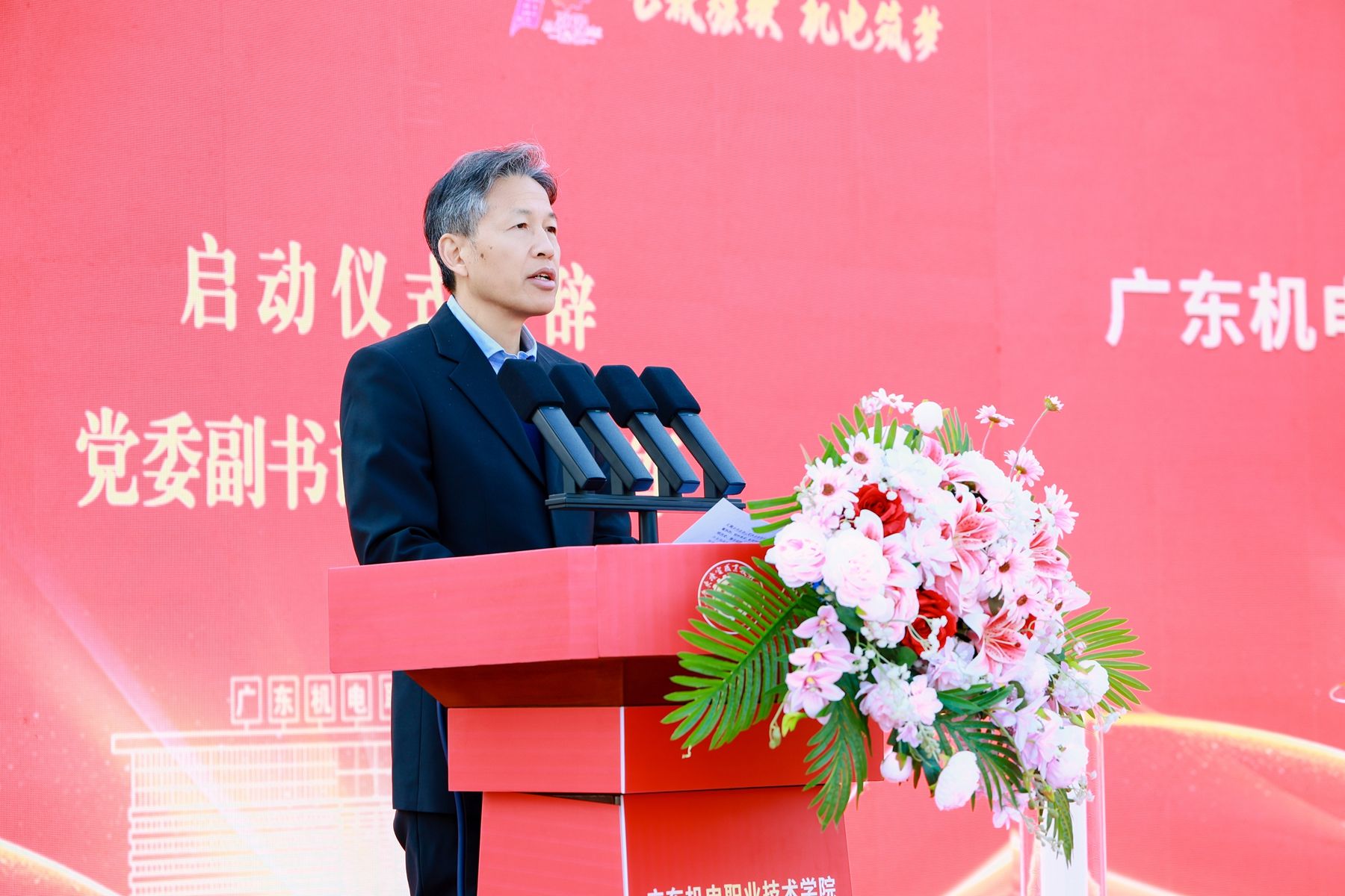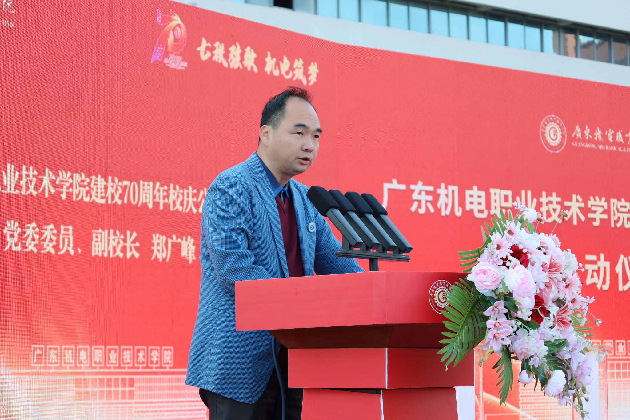仪式上,副校长郑广峰宣读校庆公告,向全体机电人发出诚挚邀约,标志着校庆系列活动正式进入倒计时阶段。