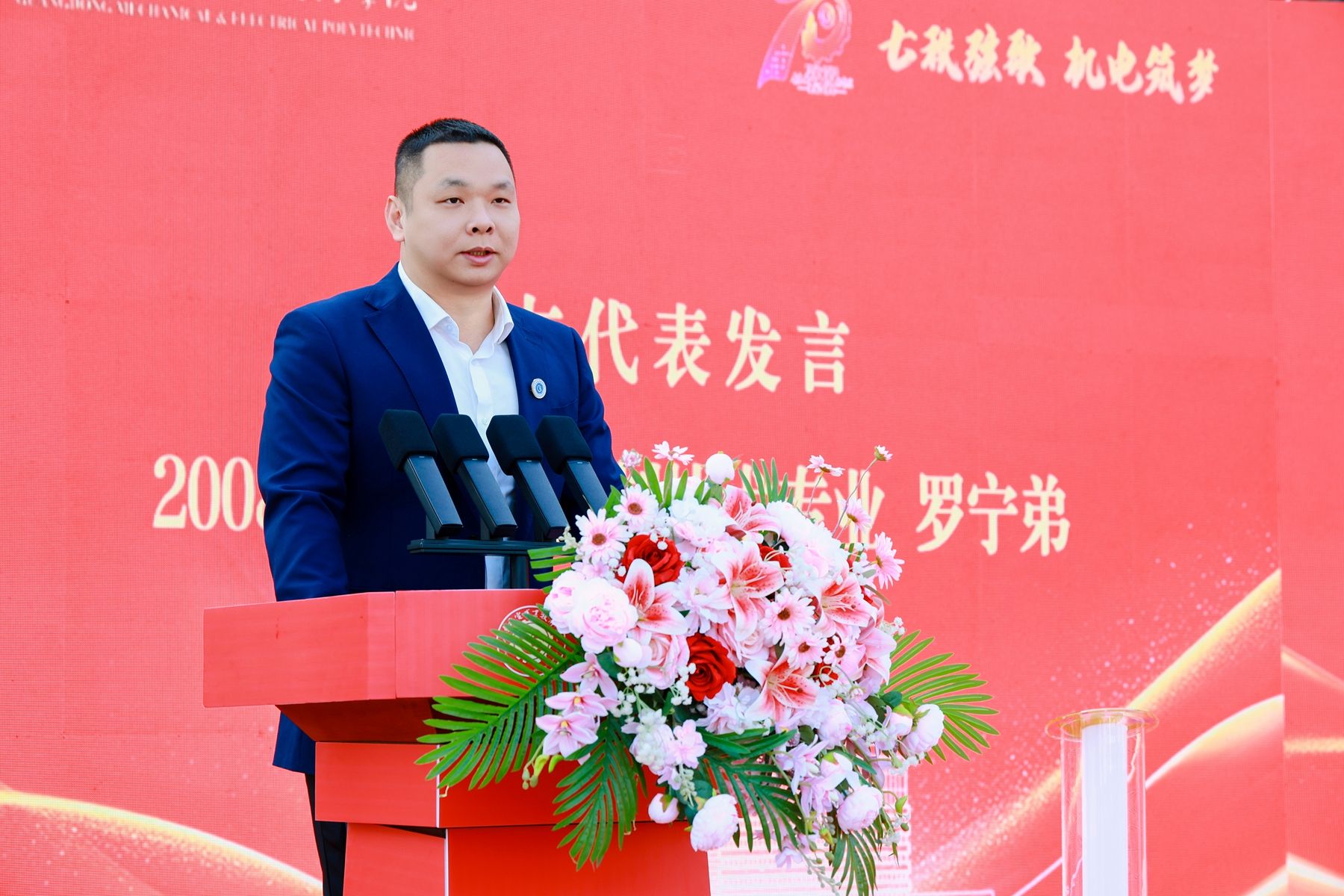我校校友代表、08级计算机控制技术专业校友、广州欢创人力资源集团有限公司董事长罗宁弟分享了自己在母校的成长经历与创业感悟。他表示将继续为母校发展牵线搭桥,也呼吁所有校友常回家看看,共叙情谊、共谋发展。