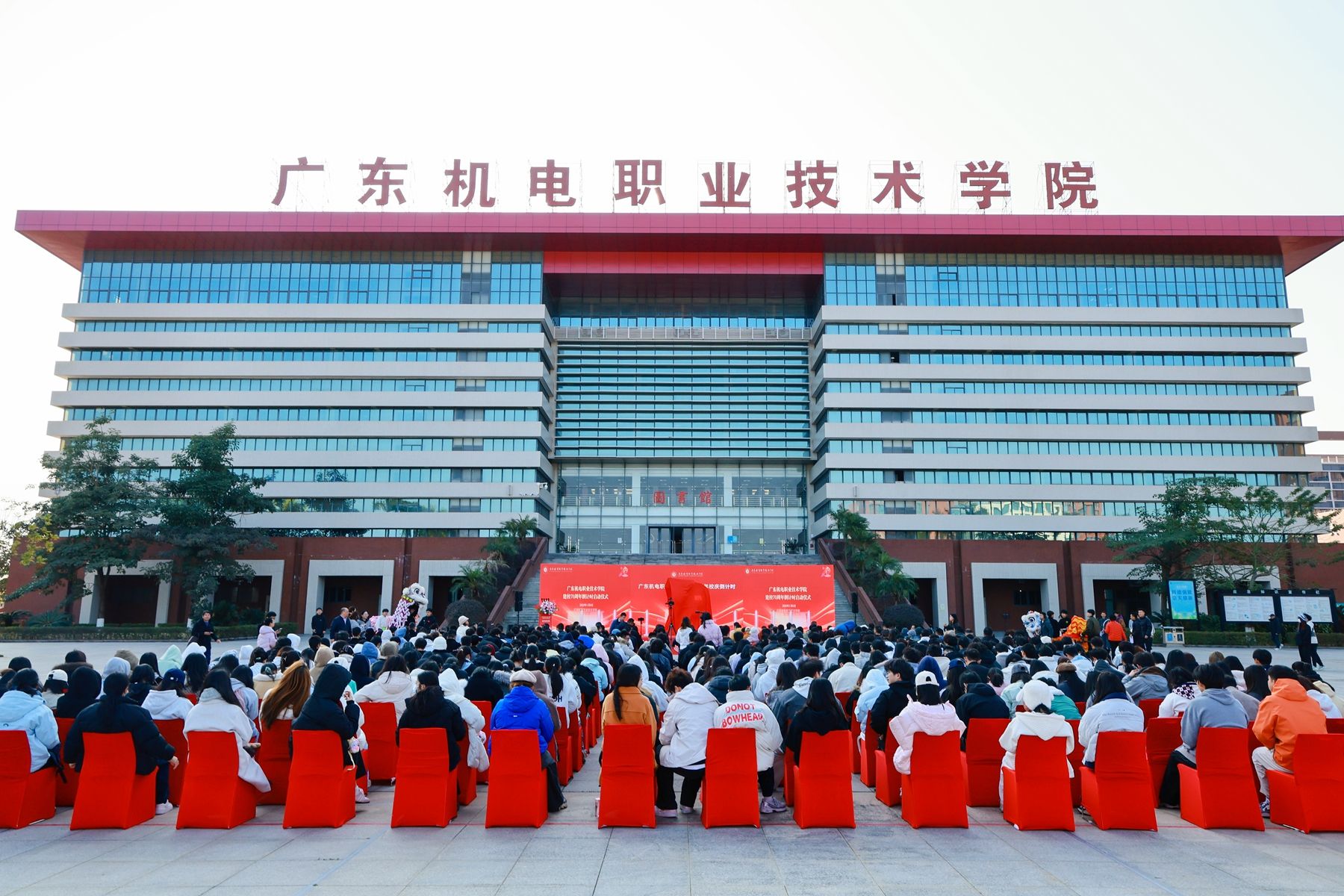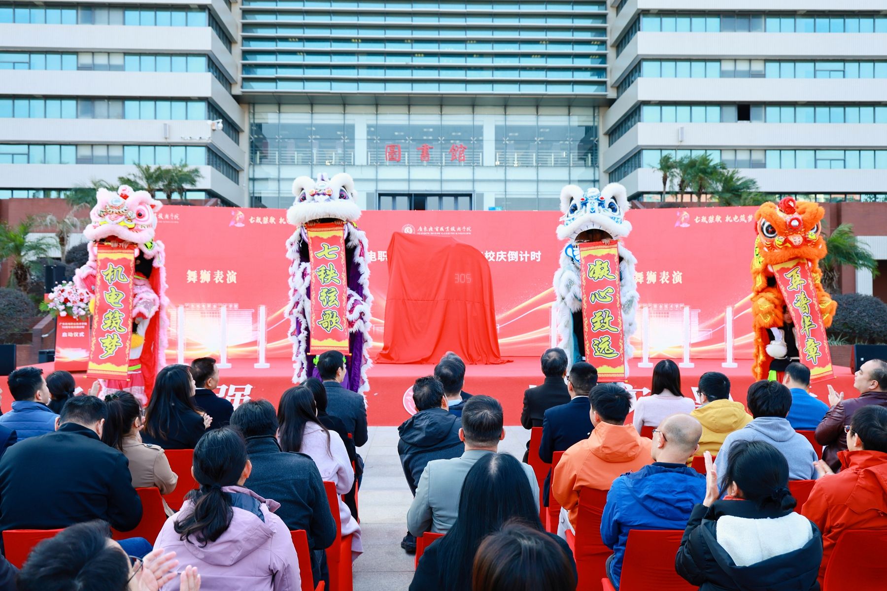 仪式在激昂的舞狮表演中开启,醒狮昂首腾跃、锣鼓铿锵,展现出一代代机电人敢闯敢拼、昂扬向上的精神风貌。