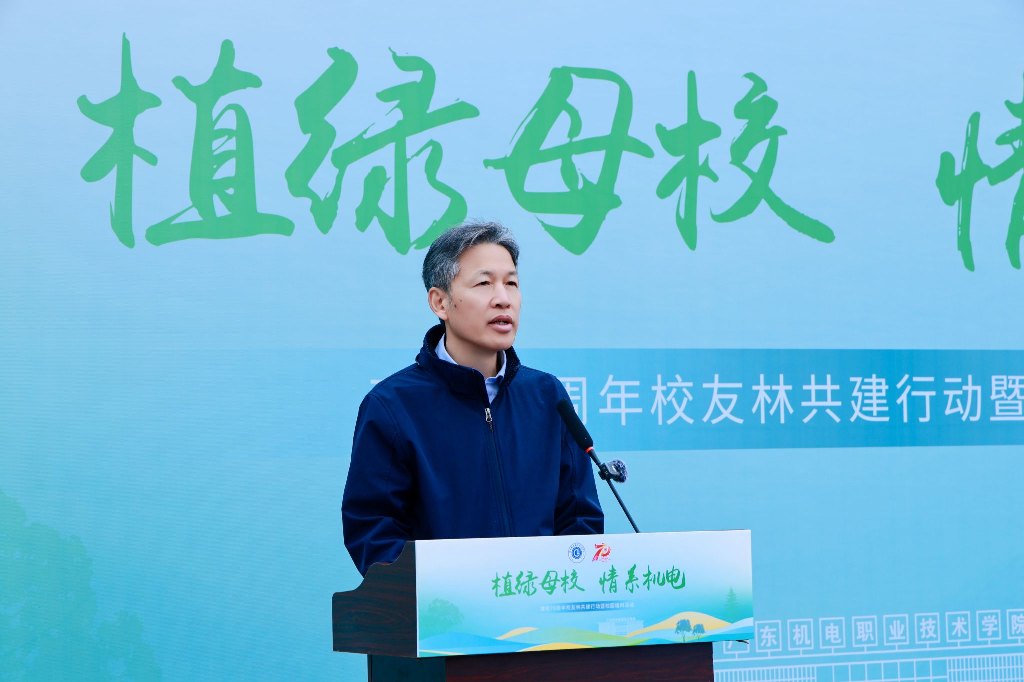 漆军在讲话中指出,此次“植绿母校 情系机电”主题活动,既是贯彻新发展理念的生动实践,更是机电人投身“美丽中国”“绿美广东”建设的责任担当。他代表学校向所有关心、支持、参与母校“绿美校园”建设的校友、师生表示感谢,并发出倡议。