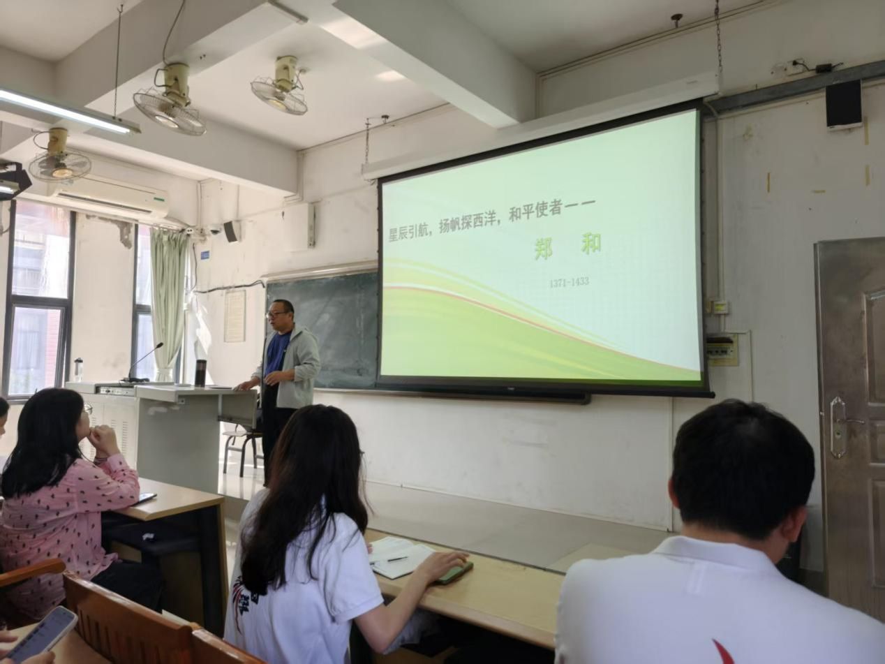 本次活动以郑和主题讲座为核心,由何大宇老师主讲,带领同学们全方位走近伟大航海家郑和。何老师详细介绍了郑和的生平事迹:郑和原名马三宝(1371—1433),云南回族人,10岁入宫,后在“靖难之役”中立下功勋,被明成祖朱棣赐姓“郑”,成为皇帝的得力亲信,宣德八年在印度古里病逝。他文武兼备,不仅具备出色的军事指挥、外交联络和航海领航能力,还通晓伊斯兰教文化,是明代杰出的航海家与外交家。