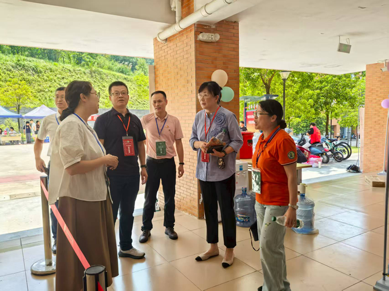 学校党委副书记方秀英,党委委员、纪委书记王刚查看新生报到点